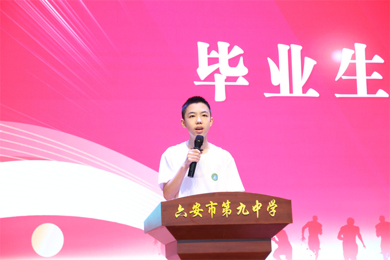 学校的发展离不开家校的共建共赢,学生的成长缺不了家校的牵手合作。九(14)班许元雪同学家长、皖西学院宣传部副部长许锐敏代表全体毕业生家长发言。发言中,他感谢九中领导和老师们的无私奉献、辛苦付出,希望孩子们常怀感恩之心,永远不要忘记母校和老师们的培养,祝愿九中越办越好、再创佳绩。