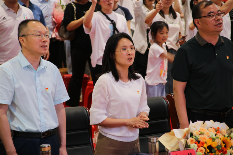 毕业典礼尾声,全体师生挥舞着五星红旗,大声唱响《歌唱祖国》,抒发浓浓的爱党爱国情怀,用嘹亮的歌声向建党102周年献礼。全体毕业生在歌声中与母校再次相拥,在歌声中与恩师好友最后惜别;全体领导、老师、家长起立,深情目送毕业生离场,为毕业典礼画上圆满句号,也为2023届毕业生的初中生涯画上圆满句号。