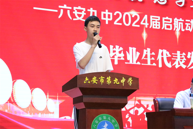 青春的号角,吹奏心中的理想;梦想的画笔,描绘明天的荣光。2024届九(9)班的王瀚同学代表全体准毕业班同学表态。他以青春的名义、用豪迈的话语激励全体同学努力学习、奋勇拼搏,全面发展、精益求精,告别拖延、追求效率,以最佳的状态迎战2024年中考。