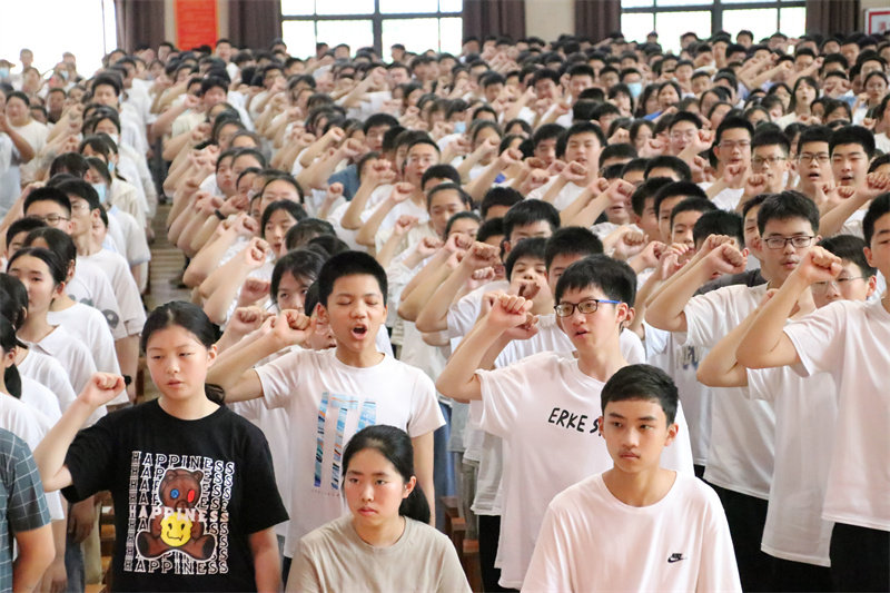 铮铮誓言,书写青春无悔;字字铿锵,挥洒壮志豪情。在2024届九(9)班的王睿森同学、九(33)班的刘心蕊同学带领下,全体同学高举右拳,集体宣誓。铿锵誓言,响彻云霄,奏响了向梦想进发、向中考冲刺的进行曲;青春朗朗,豪情激荡,新一届毕业班师生正扬帆启航,用汗水和智慧书写六安九中新的辉煌。