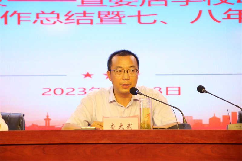 查大武、何从军、沈孝先分别代表狮子岗乡党委政府、狮子岗乡中心校、查婆店学校在家长会上讲话。林承宏总结了暑期托管的成效以及详细介绍了查婆店学校的“精心、耐心、细心、爱心”的“四心”教育理念。