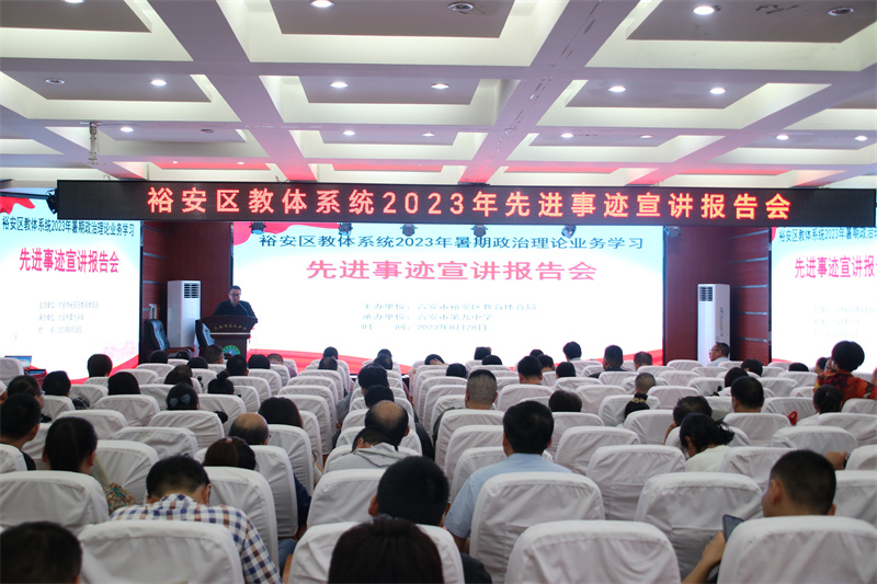 教师是立校之本,师德是教育之魂。学高为师,身正为范。为了进一步加强师德师风建设,提高教师道德规范和职业素养,强化育人的使命感与责任感,8月28日上午,裕安区教体系统2023年暑期政治理论业务学习先进事迹宣讲报告会在六安九中成功举办,我校全体教师参与了本次活动。