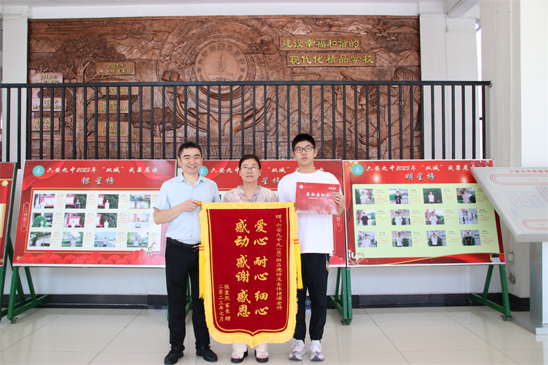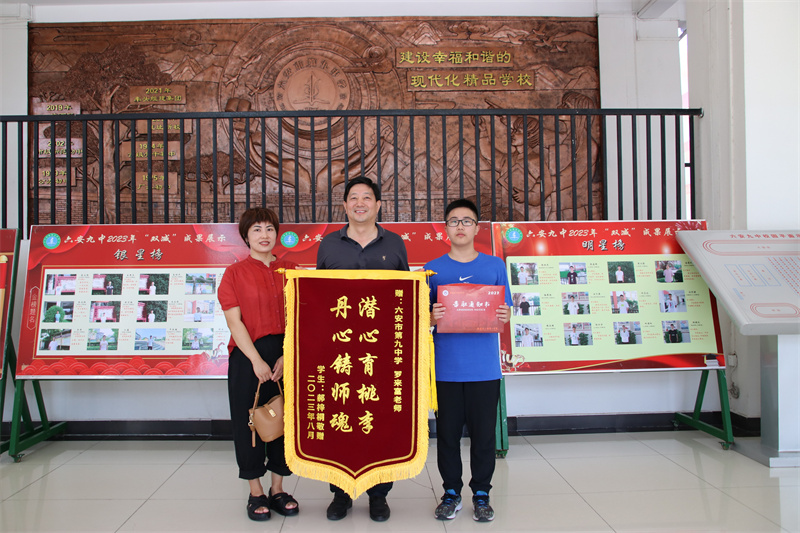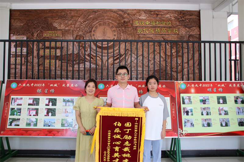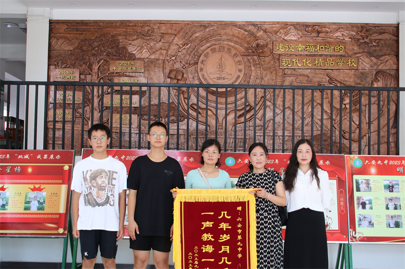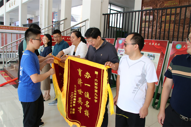 锦旗虽轻,情义甚浓;教育之路,道阻且长。“锦旗”代表一种荣誉,是家长对学校和老师的最高褒奖;“锦旗”更是一种使命,凝聚着学生家长对六安九中的信任和期待。六安九中全体教师将把这份荣誉、这份信任,化作继续前进的动力,牢记立德树人使命,关心爱护学生,尊重帮助学生,以自己的实际行动践行“培养合格的人,塑造特长的才”的办学理念,为全面实现“建设幸福和谐的现代化精品学校”的办学目标继续努力,为把六安九中建设成为“学生向往、教师幸福、家长满意、社会赞誉”的一流名校不懈奋斗。(文图:杨传广)