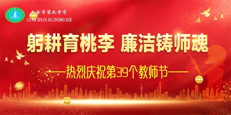 金秋送爽,硕果飘香。第39个教师节即将到来,今年教师节的主题是:躬耕教坛,强国有我。六安九中提前向全体教师致以节日的问候和崇高的敬意!向长期支持关心学校发展的广大家长和社会各界致以衷心的感谢!