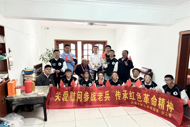 慰问是一份温暖,也是一份牵挂。一直以来,六安九中党委一直注重学校的德育工作,把团队建设作为党支部的一项重要工作来抓,以少先队和团委为活动阵地,对学生进行思想道德素质教育和爱国主义教育。此次活动以现实生活的呈现形式给孩子们上了一节精彩的思政课,为学校的德育工作增添异彩。六安九中也将以此次活动为契机,进一步加强对学生的爱国主义教育,培养学生的社会责任感和使命感,让红色精神在校园里绽放出更加绚烂的光彩。