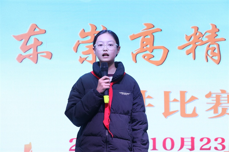 现场气氛高潮迭起,演讲精彩纷呈。舞台上,小选手们紧紧围绕“毛泽东崇高精神风范”这一主题,结合毛泽东诗词作品、生平事迹、革命精神、领导风范等方面进行了精彩的演讲,或深情款款,或激情澎湃,或激昂高亢,或低沉颂吟,用饱满的热情、感人至深的故事、强烈的爱国之情感染着在场的评委和观众,展现出“志笃少年”昂扬向上、自信拼搏的时代风采,赢得了评委和现场观众的阵阵掌声。