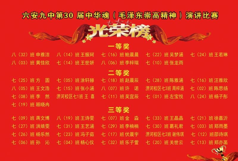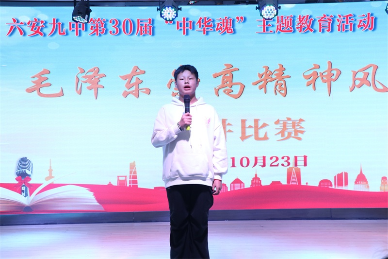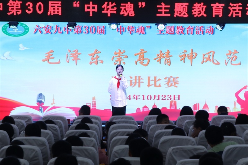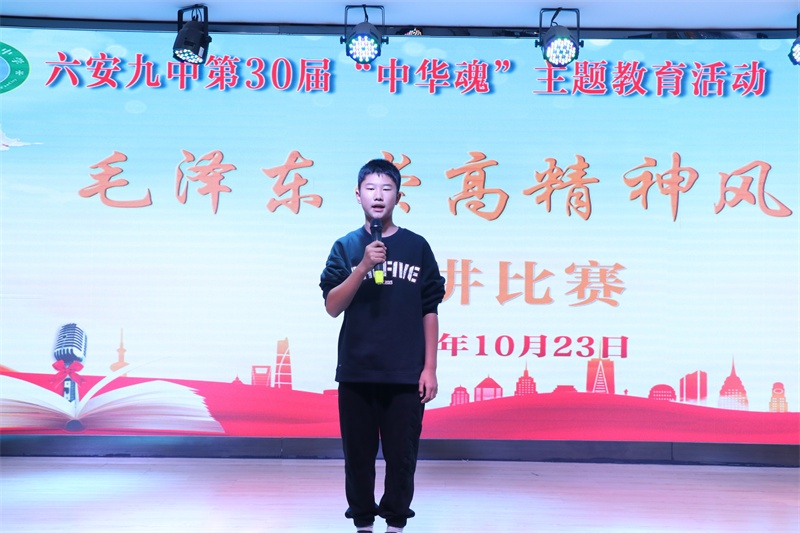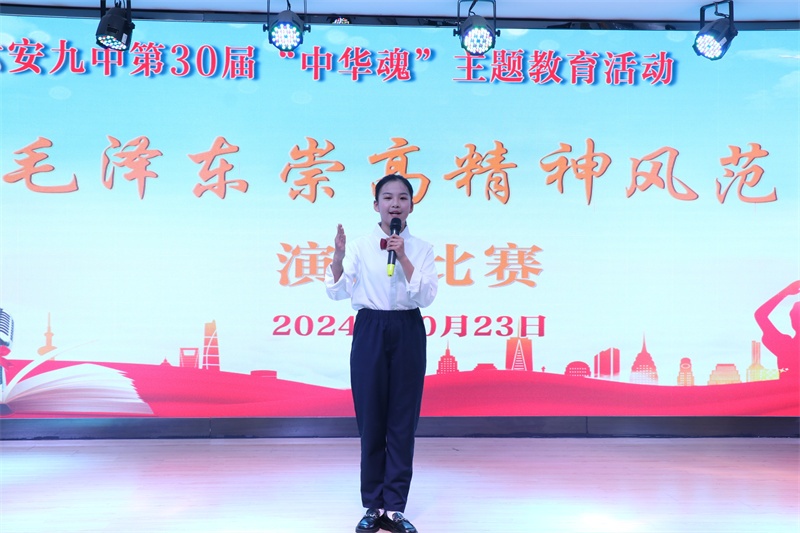 为贯彻落实爱国主义教育,学习并传承毛泽东的崇高精神风范,弘扬中华民族优秀传统文化和精神,引领广大青少年从红色基因中汲取奋进的力量,坚定理想信念,努力成为担当民族复兴大任的时代新人,10月23日下午,我校举行第30届“中华魂”毛泽东崇高精神风范主题教育活动演讲比赛。