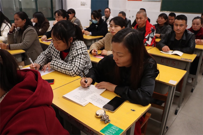 优秀学生家长代表、九(6)班张皖湘同学家长作交流发言。她表示,家长需要与学校紧密合作,不仅要给孩子学习上的指导,更要给孩子情感上的支持和心理上的疏导。作为家长要看到孩子的成长和进步,不仅要在物质上支持,更重要的是鼓励和倾听;要引导孩子养成定时复习,主动提问,独立思考的习惯;要积极的与老师保持联系,了解孩子在校的学习情况和表现,及时反映孩子在家中的状态,做到家校携手同行,为孩子们的成长保驾护航。