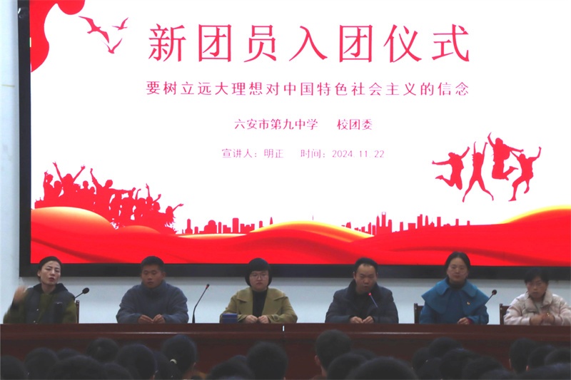习近平总书记强调:“在实现中华民族伟大复兴的征程上,中国共产党是先锋队,共青团是突击队,少先队是预备队。入队、入团、入党,是青年追求政治进步的‘人生三部曲’。”11月22日,六安九中在团校教室隆重举行2024年下半年新团员入团仪式。又一批优秀的九中学子正式加入了中国共产主义青年团,成为了光荣的共青团员。