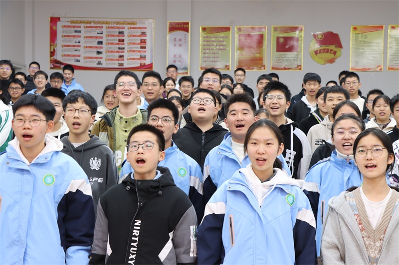 “五四”的火炬从这里点燃,壮丽的事业从这里开启,激励着我们继往开来。全体团员肃立齐唱团歌。激昂嘹亮的歌声,唱出了新团员的无悔青春,也唱出了他们对共青团事业的热爱和对未来的坚定信心。在歌声中,本次入团仪式圆满结束。新团员们带着希望与憧憬踏上新的征程。愿君移向长林间,他日将来作梁栋。