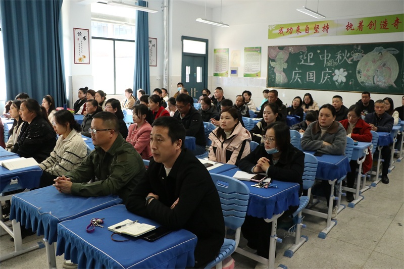 第一阶段全体家长会由八年级年级部主任罗来富主持。教导处主任梁中兵对期中综合素质评价进行总结分析并提出建议。梁中兵全面分析“初二现象”的特殊性,从做一个有品位的家长、做一个善于沟通的家长、做一个积极的家长、做一个细心的家长、做一个有远见的家长、做一个能与孩子交朋友的家长六个方面,提出教育建议,帮助家长更好地理解和引导孩子,共同经历这段成长的旅程。