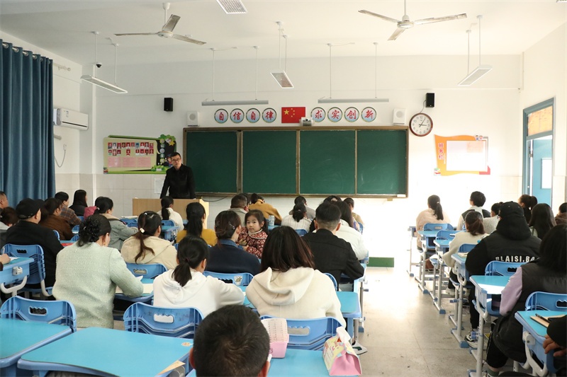 任罗来富代表年级部就相关工作,提出以下四点要求和看法:多关注,多陪伴;重习惯,慎交友;讲文明,塑形象;重安全,讲规则。