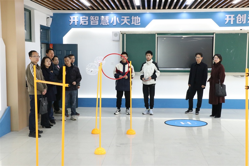 考察组一行参观了我校的校园环境及庐剧文化展厅、青少年法治宣传教育中心等场所,实地察看了我校的机器人、无人机、创客教室等科技社团和功能室,观看了我校学生的科技创新作品和无人机社团学生的精彩表演,详细了解了我校科技创新教育和软硬件建设等情况。考察组一行对我校美丽整洁的校园环境和浓郁深厚的文化氛围印象深刻,对我校的办学特色、管理模式及教育教学成就给予了充分肯定和高度赞誉。