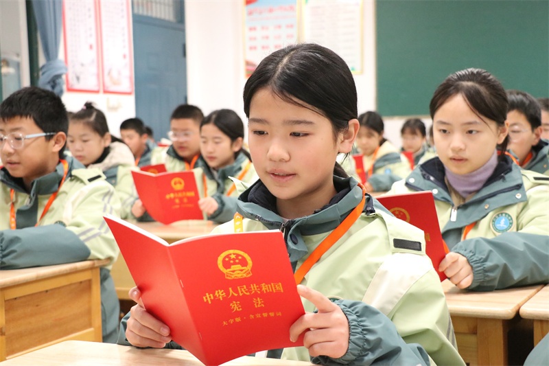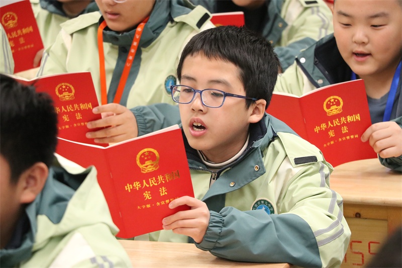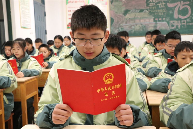 “宪法晨读”是我校每年“宪法宣传周”固定活动之一。12月4日上午,在班主任的组织下,各班级以齐读、领读、自由读等形式积极开展宪法晨读活动。“中华人民共和国的一切权力属于人民。人民行使国家权力的机关是全国人民代表大会和地方各级人民代表大会……”同学们精神饱满,大声朗读宪法学习内容,一声一句宪法条例,一字一言深情朗读,声声入耳,字字入心。在大声诵读中,同学们了解宪法知识,树立法治信仰,用心感受宪法的庄严与神圣,增加对宪法的领悟和理解。
