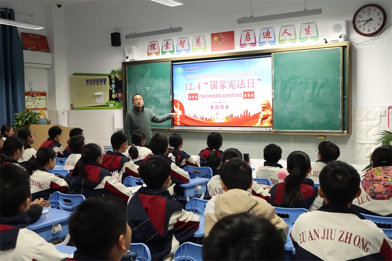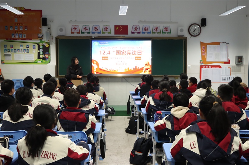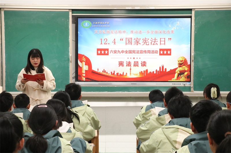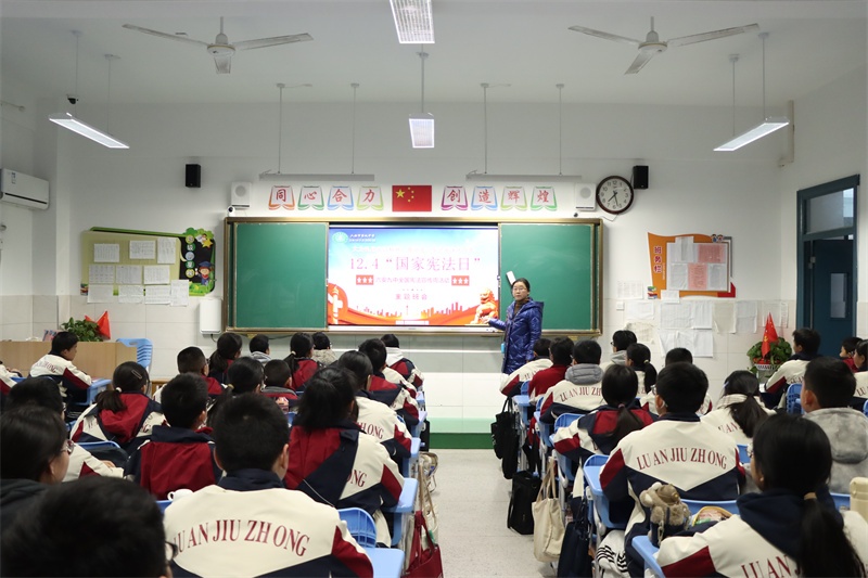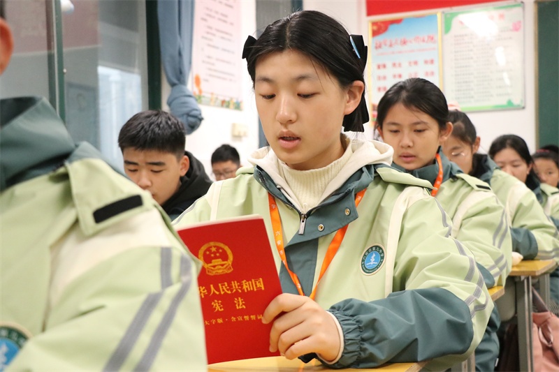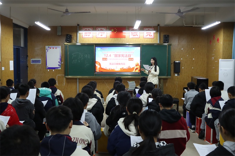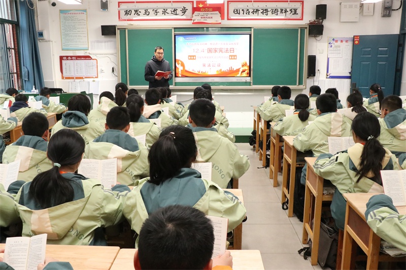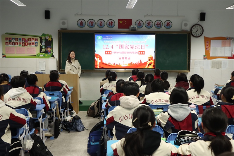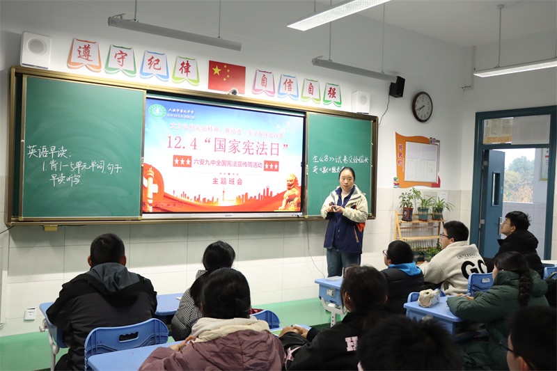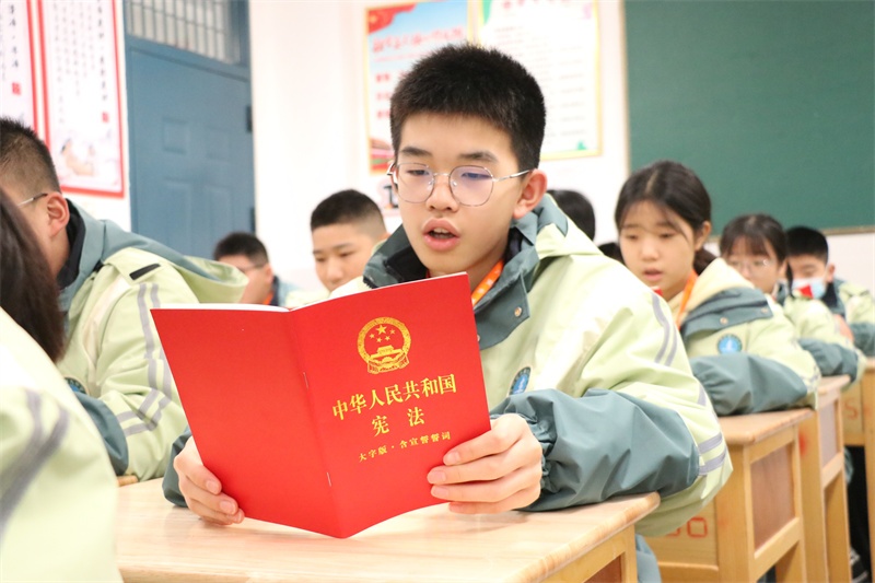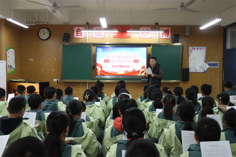 弘扬宪法精神,共筑法治校园。我校积极组织开展全国“宪法宣传周”系列活动,旨在引领全体师生尊法、学法、守法、用法,争做宪法的忠实崇尚者、自觉遵守者和坚定捍卫者。宪法学习永远在路上,我校将持续高度重视青少年法治宣传的教育工作,创新方式方法,加强宣传力度,不断加强校园法治文化建设,丰富法治文化氛围,共筑和谐美丽法治校园,让法治之光照亮九中校园的每一个角落,护航学校各项事业高质量发展。(文:杨传广 图:马业刚)