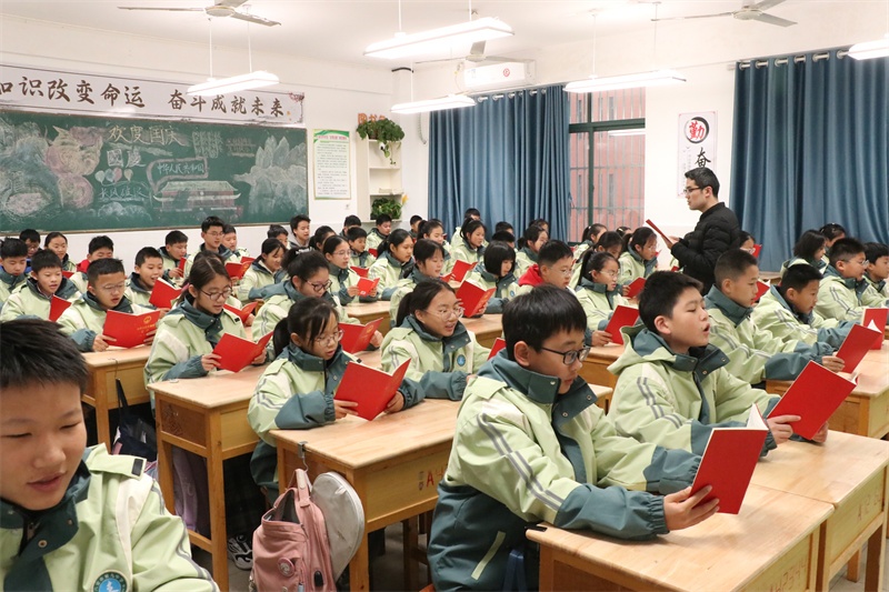 在音乐老师一字一句的教唱下,同学们用清脆悦耳、朝气蓬勃的歌声传递着对宪法的尊崇与热爱,他们感到宪法不再陌生与遥远,与自己的生活息息相关。宪法传唱活动,浸润校园法治文化,引领广大青少年以青春之声弘扬宪法精神,让法治观念在心中生根发芽。