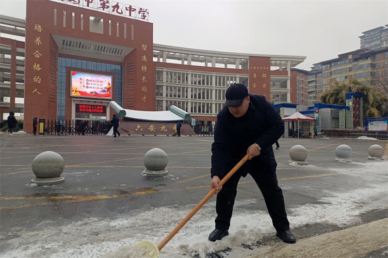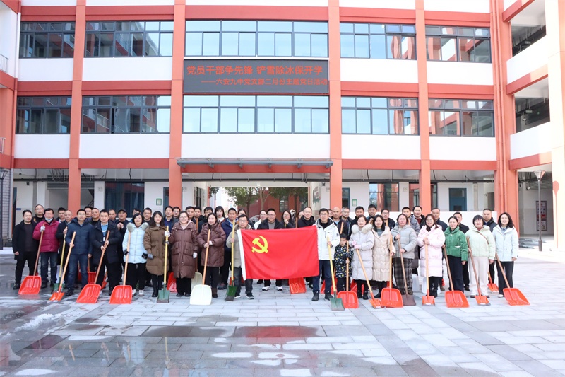 近日,连日的雨雪让美丽的校园银装素裹,风景如画;但校园积雪严重,存在安全隐患,给即将返校的师生带来诸多不便。为确保开学各项工作平稳运行,守护广大师生生命安全,营造一个更美好、更安全的校园环境,2月25日下午,六安九中党支部组织全体党员教师开展“党员干部争先锋 铲雪除冰保开学”主题党日活动,对学校广场、道路等活动区域进行铲雪除冰,为迎接师生平安返校做好充分准备。