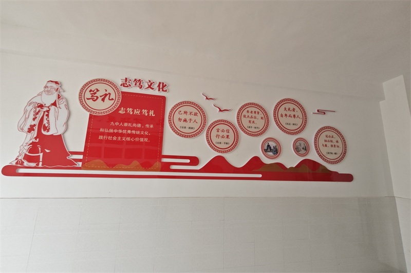 卯兔踏云去,辰龙迎新春。新的学期,我校坚持打造志笃文化浸润引领这一理念,在我校教学楼走廊两边的墙壁上,你会看到大气儒雅而富有浓厚文化底蕴的文化墙。这就是我校今年新设计的体现我校办学理念的志笃文化精神,它包含笃志、笃学、笃行、笃礼四个内容。向美而行,以美育人,一楼的走廊上,展览着我校师生创作的一幅幅精美的书画作品。别具一格的校园文化长廊使整个校园充满个性化的文化氛围,为学校师生创造了优美的艺术环境,更提升了校园的文化品位。