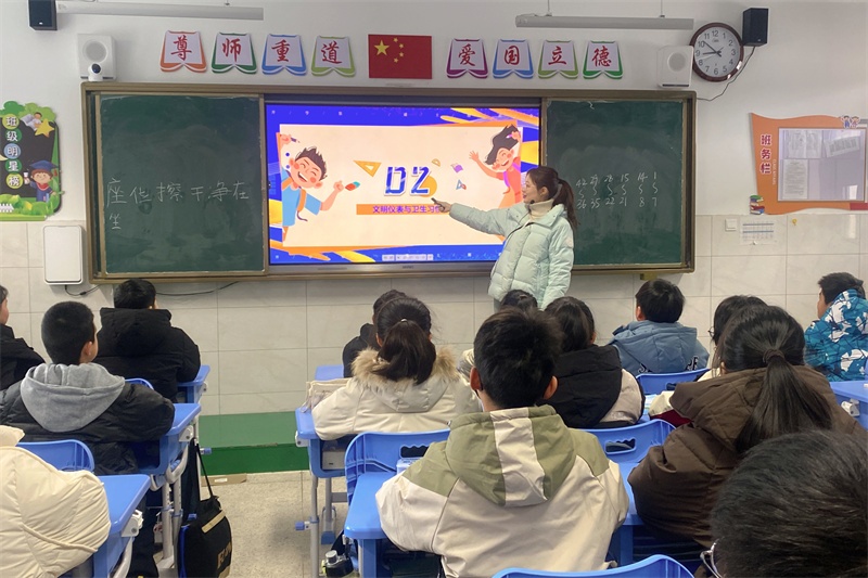 为了让同学们尽快适应新学期校园生活,各班级精心布置教室,认真准备并召开“开学第一课”主题班(队)会。各位班主任结合学生年龄特征,发挥各自专长,通过警示案例、视频讲解、情景模拟等各种形式,围绕养成教育、文明礼仪、卫生习惯、安全教育、心理健康教育等方面进行讲述,从而帮助同学们尽快收心回归到日常的校园学习生活中去,把心态调整到最佳状态;制定好新学期的学习计划,带着明确的目标进入新学期。