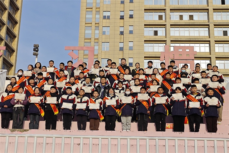 升旗仪式结束后,学校表彰了2023年度优秀学生会干部,我校校长李艳为获奖同学颁发了奖状并与大家合影留念。