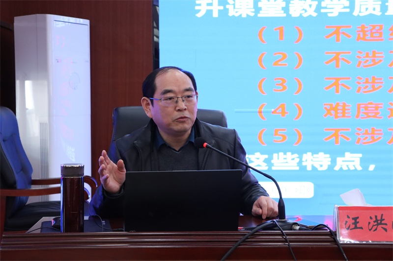 汪洪潮在会上对安徽省中考数学试题特点进行了讲解,指出中考试题面向全体学生,立足基础,注重能力,关注核心素养,做到了:不超纲、不超标;不涉及高中内容;不涉及竞赛;难易适中;不涉及负面清单内容。