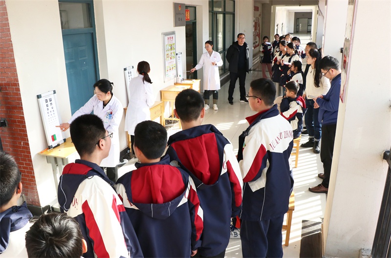本次讲座,不仅提高了我校师生对眼健康的认识,也为他们提供了实用的近视预防和控制方法。聆听讲座后,同学们列队接受视力检查。市人民医院的医生们为同学们测量视力,询问他们所戴眼镜情况,为同学们的眼睛带来了贴身的呵护,使同学们深受教育和感动。