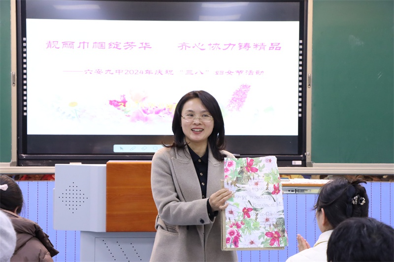 靓丽巾帼绽芳华,齐心协力铸精品。我校是安徽省巾帼建功先进集体。一直以来,学校高度重视女教师队伍建设,拥有一支思想正、素质高、业务硬、贡献突出的女教师队伍,涌现出一大批省、市“教坛新星”“师德标兵”“优秀教师”“三八红旗手”及“学科带头人”。今后,学校党支部和工会将积极带领全体女教师以“巾帼不让须眉的”壮志豪情、“妇女能顶半边天”的责任担当,齐心协力,逐梦前行,在加快建设“幸福和谐的的现代化精品学校”的新征程上建功立业,续写荣光,谱写六安九中教育的华美篇章!(文:何映月 图:李应)