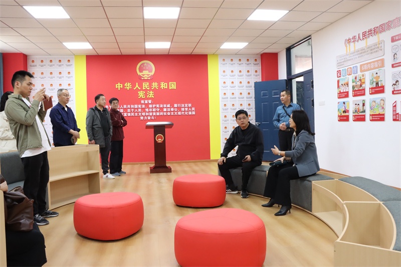 4月1日上午,区关工委主任栾昌荣,区司法局党组书记、局长徐静一行莅临我校开展青少年法治宣传教育中心建设推进工作。
