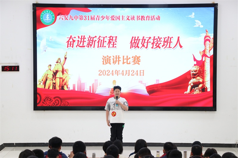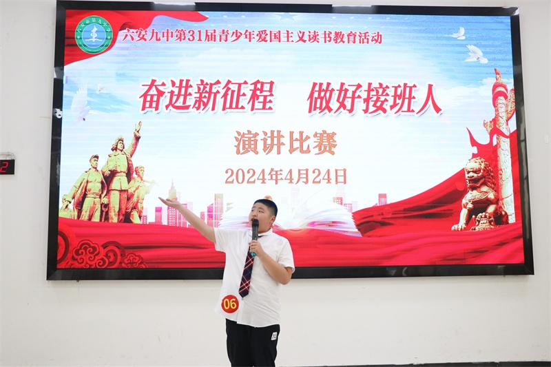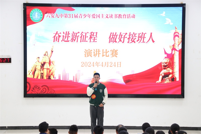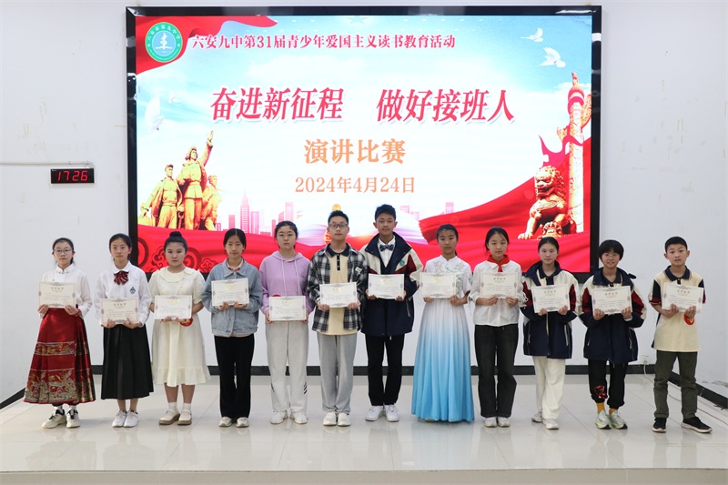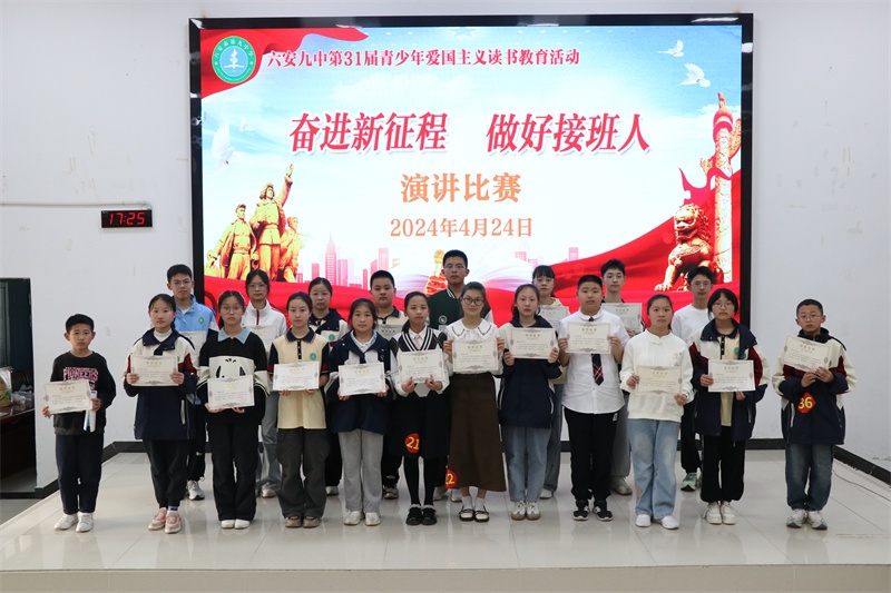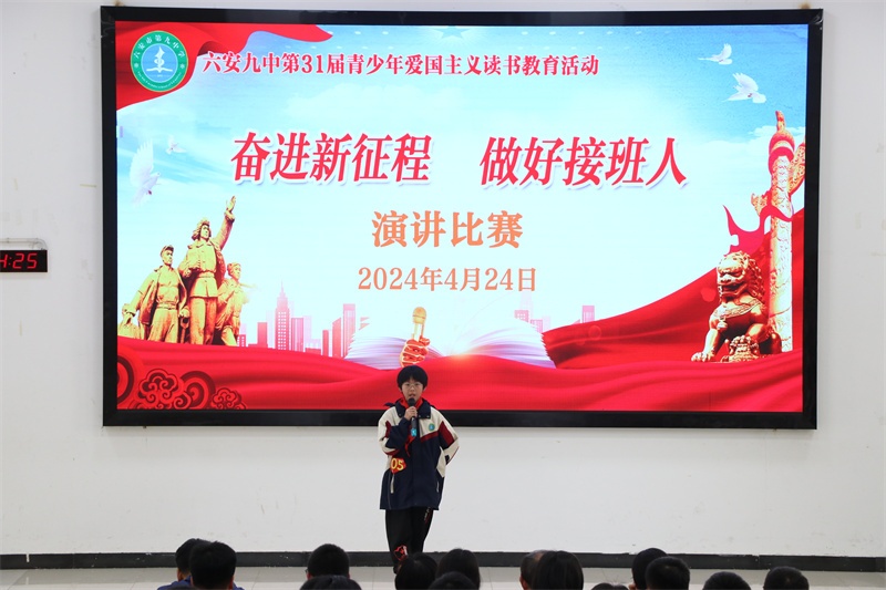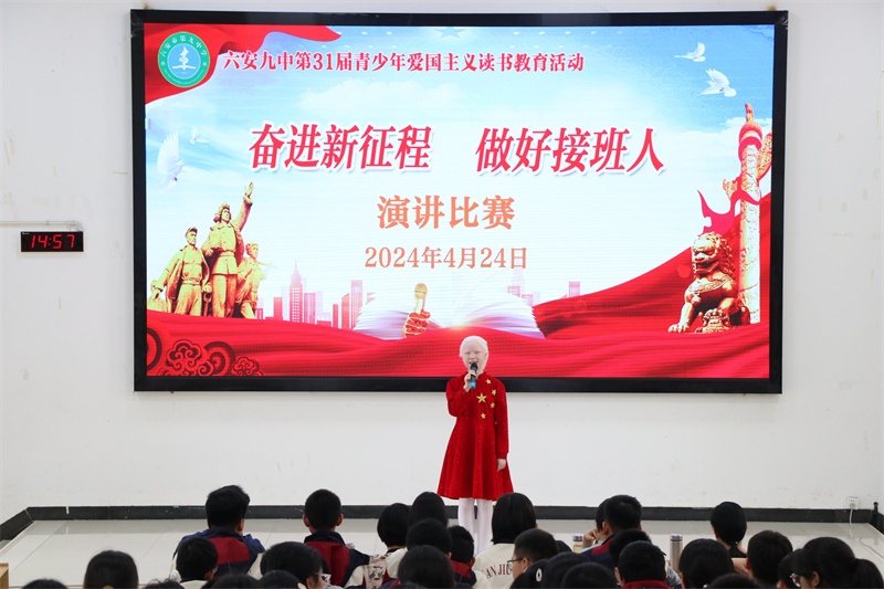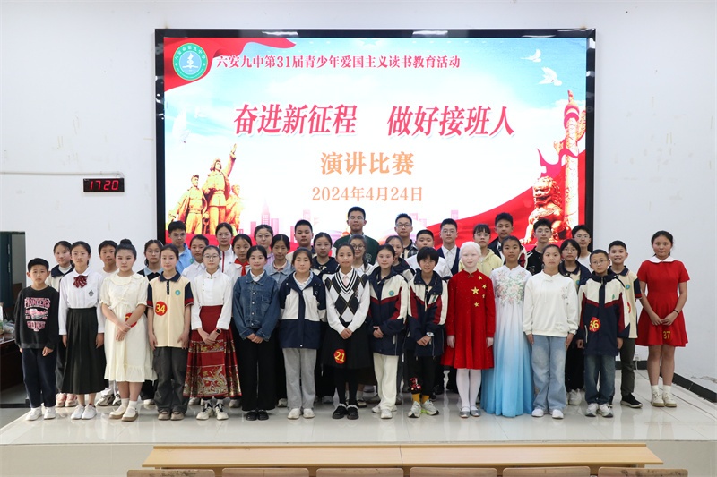 青少年爱国主义读书教育活动是我校的一块素质教育品牌。多年来,我校牢记为党育人、为国育才的初心使命,秉承“培养合格的人 塑造特长的才”的办学理念,高度重视青少年爱国主义读书教育系列活动,始终坚持把此活动作为学校思政、德育工作的重要内容,开展了形式多样、内容丰富的爱党爱国爱社会主义教育活动,取得了丰硕的成果。今后,我校将进一步丰富活动内容,创新活动形式,不断开创我校爱国主义读书教育活动的新局面,努力把六安九中办成幸福和谐的现代化精品学校。(文:杨传广 图:马业刚)