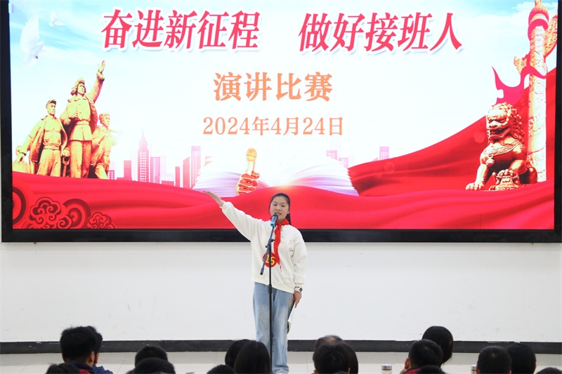 经过班级推荐,本次演讲比赛,共有40名选手参赛。比赛中,小选手们用饱满的精神面貌、质朴的语言、真挚的情感紧紧围绕“奋进新征程 做好接班人”这一主题,或深情款款,或激情澎湃,用最真挚的情感和最生动的语言抒发着自己对英雄们的敬仰和对新时代的期盼。