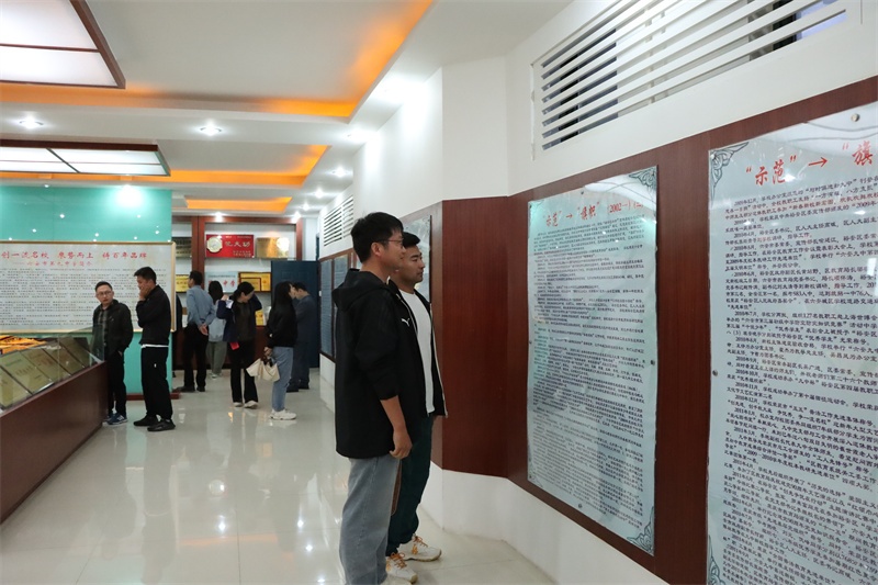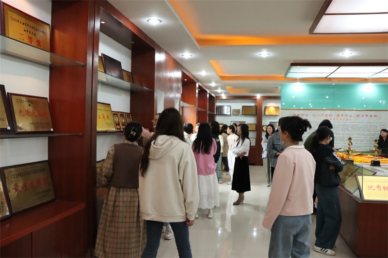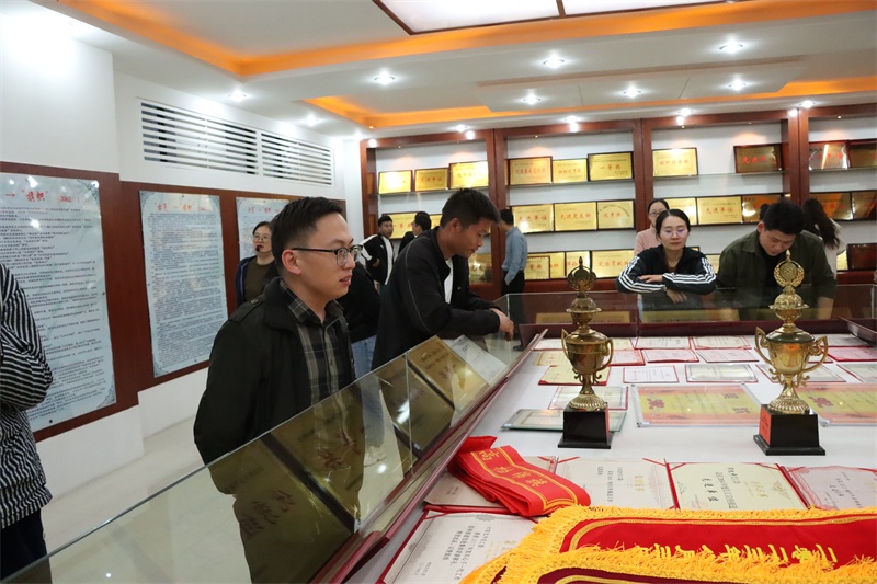 为使青年教师更多地了解我校的发展历程和办学成就,了解老一辈九中人为学校的发展付出的艰苦努力,牢固树立主人翁意识,激发他们的拼搏精神,活动伊始,学校组织青年教师参观学校荣誉室。