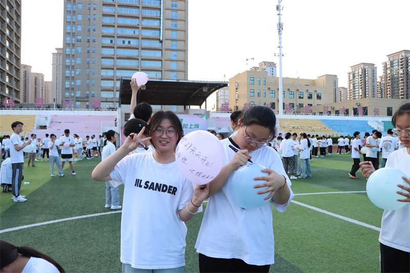 “踩气球”环节,将活动氛围推向最高潮。压力大吹大气球,压力小吹小气球,同学们纷纷在气球上写出自己的愿望、心声、理想等,然后踩爆气球,主持人大声问道:“愿望能不能实现?”同学们:“能”,“今天放不放松?开不开心?”同学们异口同声:“放松!开心!”最后,一声声“我们是最棒的!”铿锵有力、掷地有声的重复着,循环着……现场气氛活跃而又和谐!在此情景中,孩子们释放了负面情绪,身心得到了很大的放松,心情变得无比舒畅!