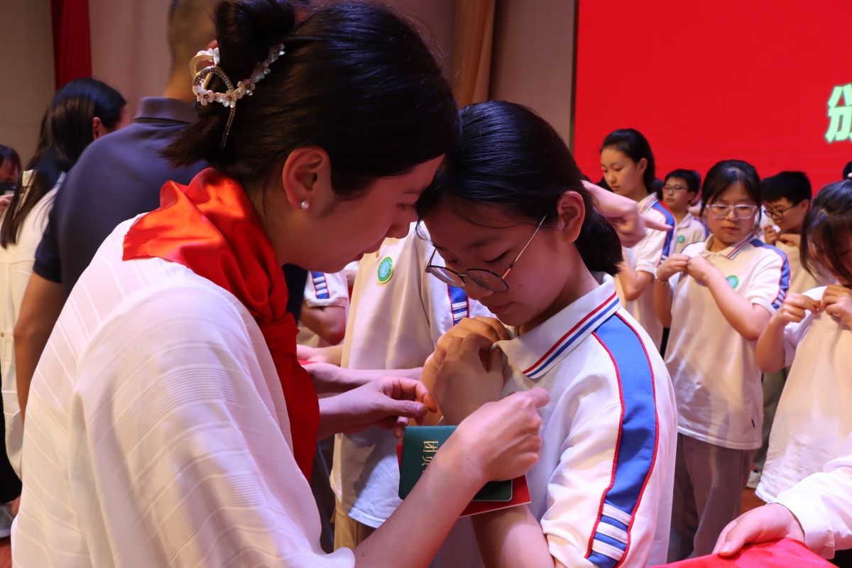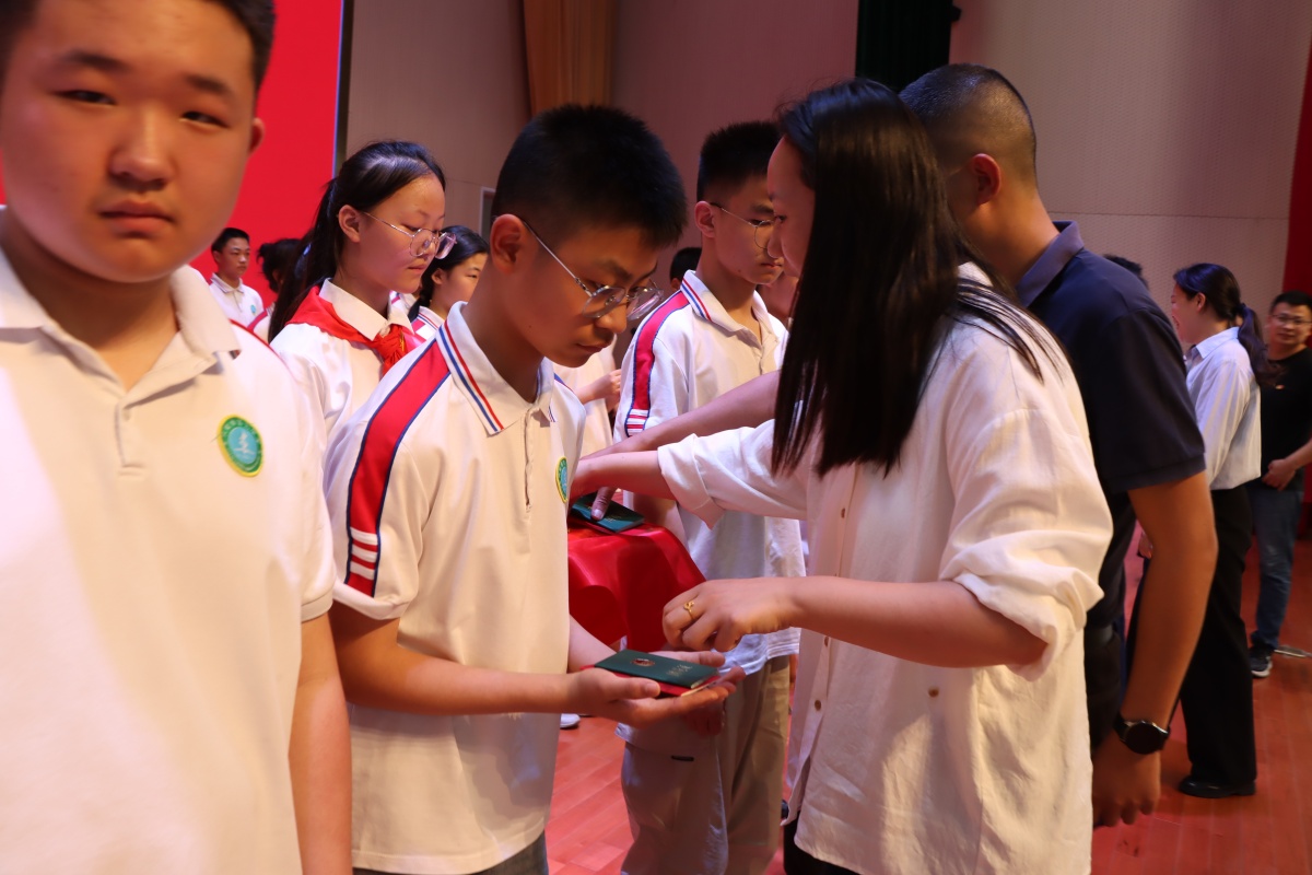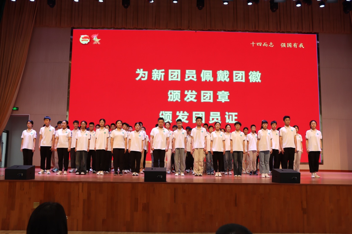 区教体局、团区委及校领导为新团员颁发团章、团员证并佩戴团徽。这一刻,团徽闪烁的金光,寄托着祖国对青年一代的美好期许。领导们与新团员互动,热情鼓励新团员们积极向上,勤奋成才。团员们纷纷表示感谢,他们会牢记自己的使命,甘当表率,默默奉献。