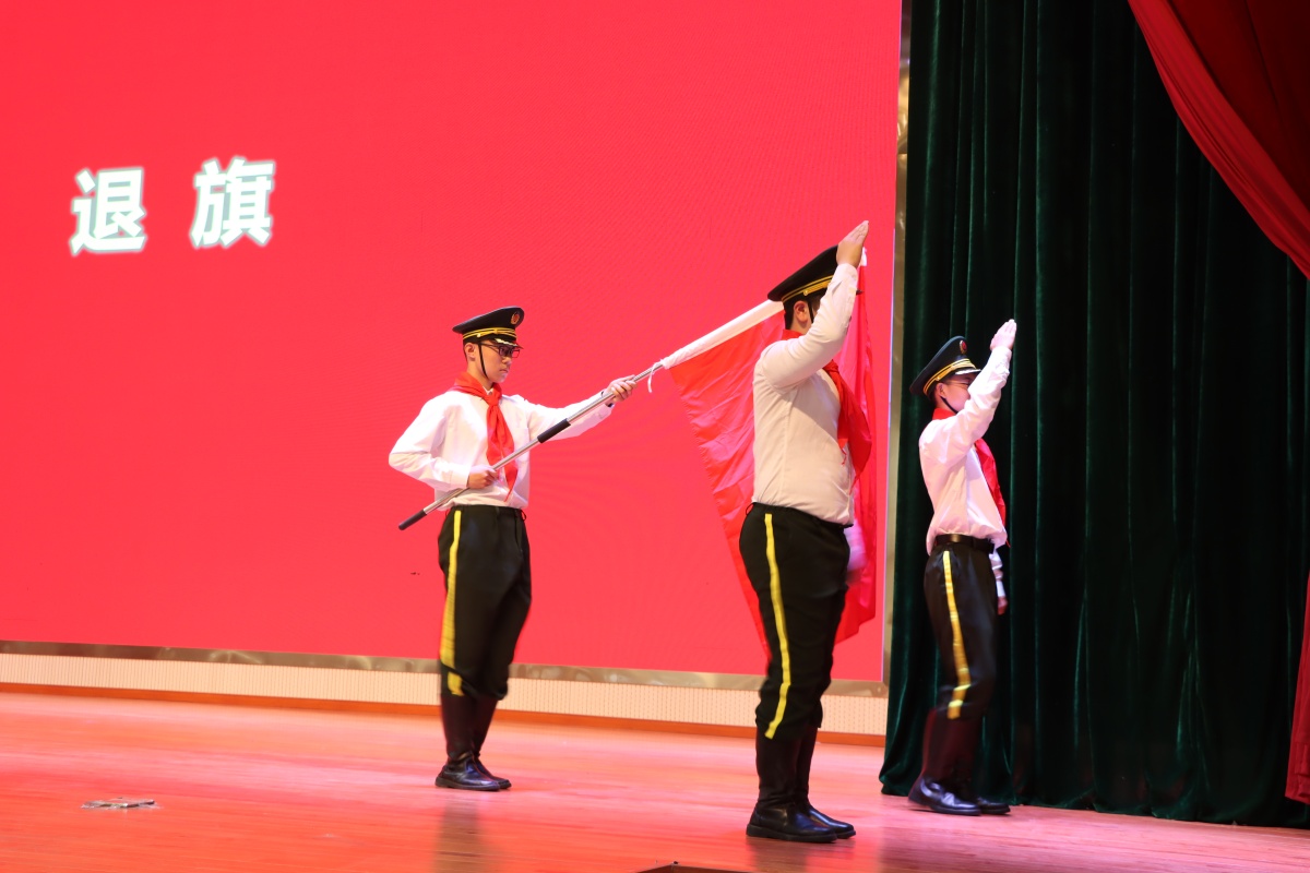 伴随着退旗曲,熟悉的队旗从眼前渐行渐远,同学们挥臂敬礼,依依惜别。