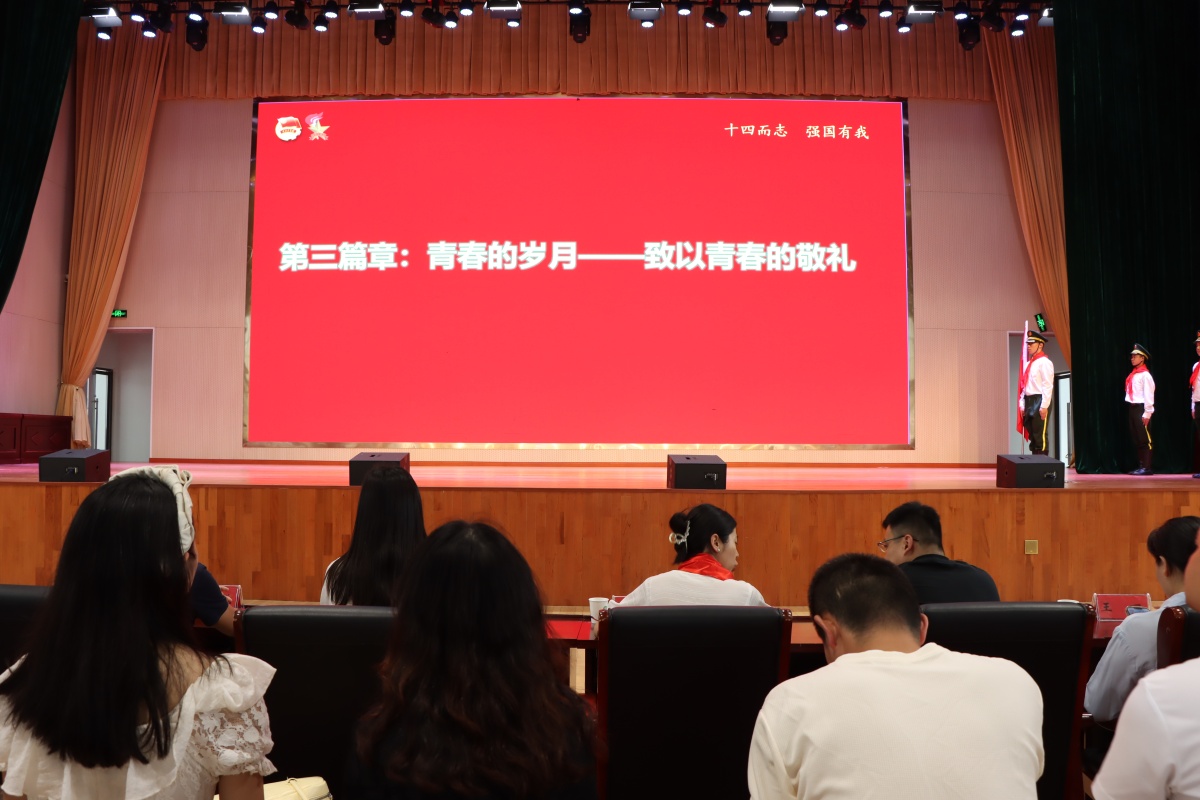 鲜艳的团旗伴着慷慨激昂的旋律,散发着青春最靓丽的颜色。出团旗后,全体新团员面向团旗,右手握拳,高举过肩,庄严宣誓。青春誓言,高昂雄浑,铿锵坚定,表达了新团员们对共青团组织的无限热爱,展现了新时代青年的风采与担当。校团委员苏娟娟老师带领全体新团员们学习《团章》的有关条款,让同学们知道自己身上肩负的神圣使命和义务。