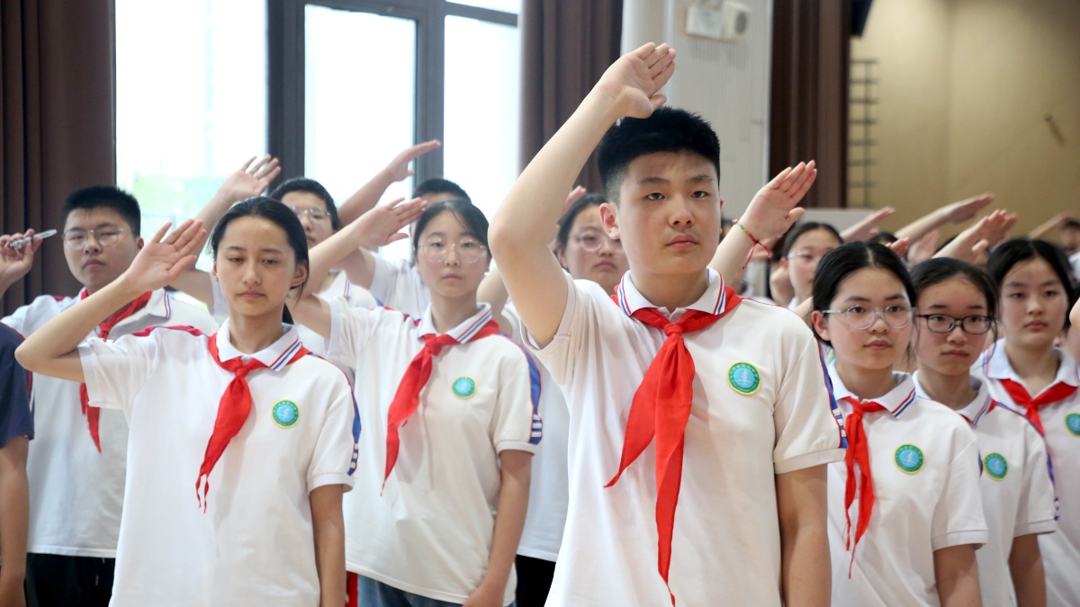 告别天真烂漫的儿童时代,迈进朝气蓬勃的青年时代。此次活动,见证了“志笃少年”从少年先锋队迈向共青团的重要时刻,也为他们的十四岁留下了难忘的回忆。我校团委是安徽省“五四红旗团委”。一直以来,我校高度重视学生的思想政治教育,注重加强团队组织建设,开展了丰富多样的主题教育、志愿服务和社会实践等活动,有效提升了广大青少年的综合素质和社会责任感。今后,我校全体师生将以习近平新时代中国特色社会主义思想为指导,扛起历史之责、不负时代之望,立鸿鹄志、做奋斗者,敢做时代先锋,勤于追逐梦想,在全面建设社会主义现代化国家、全面推进中华民族伟大复兴的历史进程中书写自己的青春篇章。(文:董 磊 图:李应 视频:马业刚)