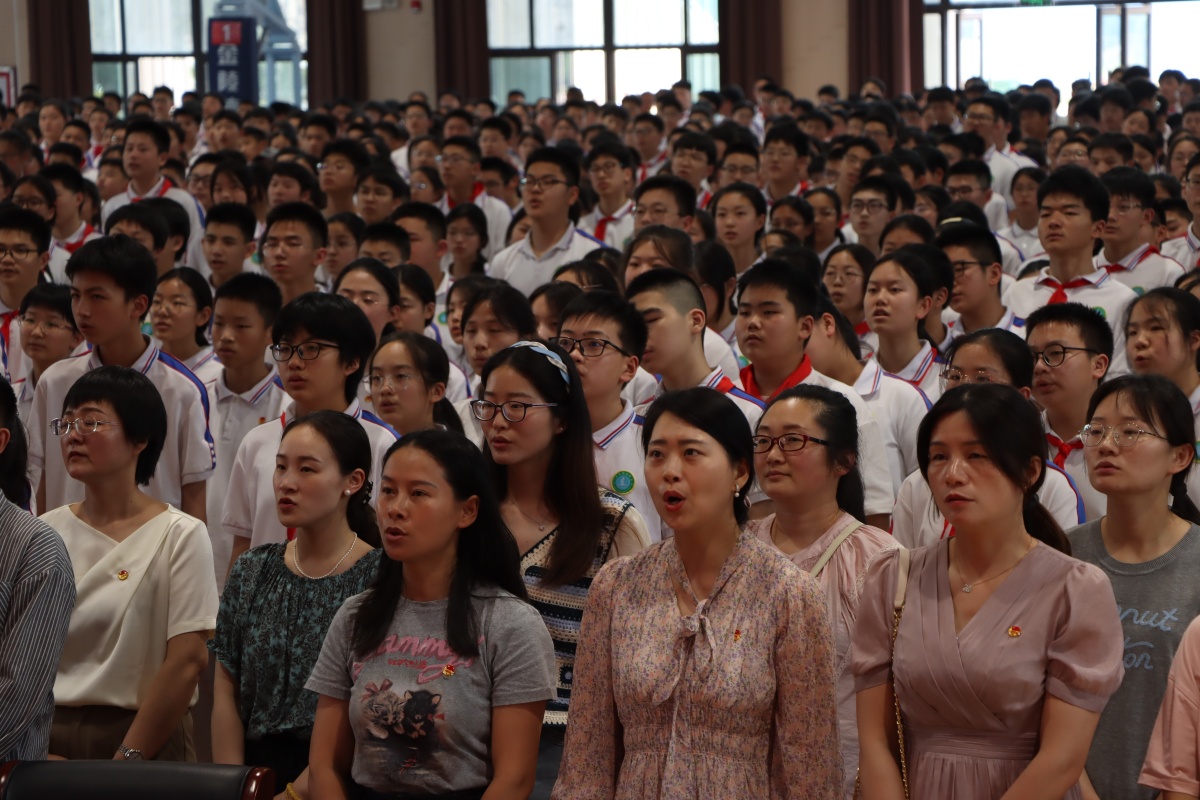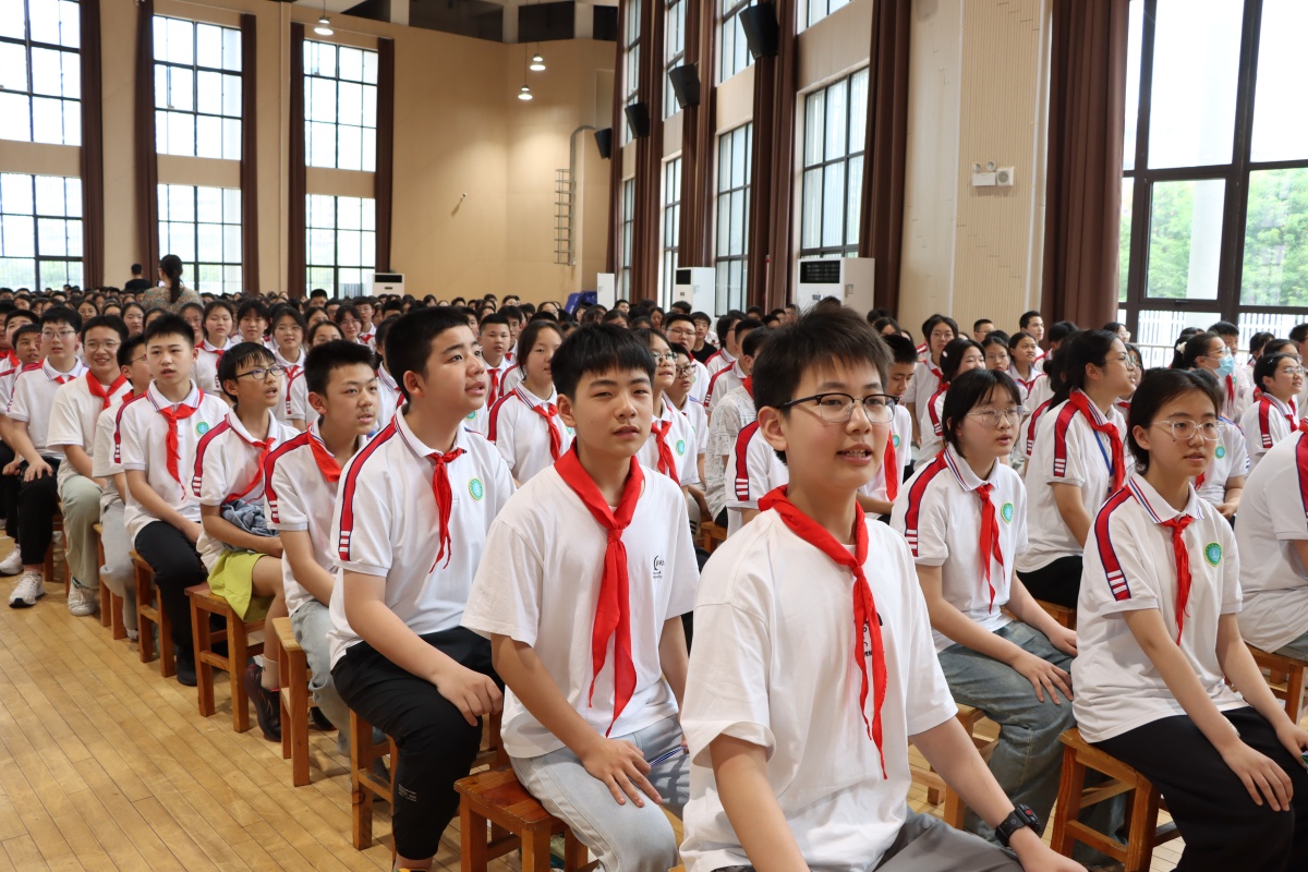 学校大队委宣布,全校今年超龄离队队员人数为2049人。八(1)中队的刘子恒同学代表全体离队少先队员上台发言。刘子恒同学说:“红领巾见证了自己的成长,告别少先队员这个称呼,告别火热的少先队组织生活有万般不舍。我们年满14周岁,跨入了青年的行列,肩上的担子更重了,人生目标也越来越近。”