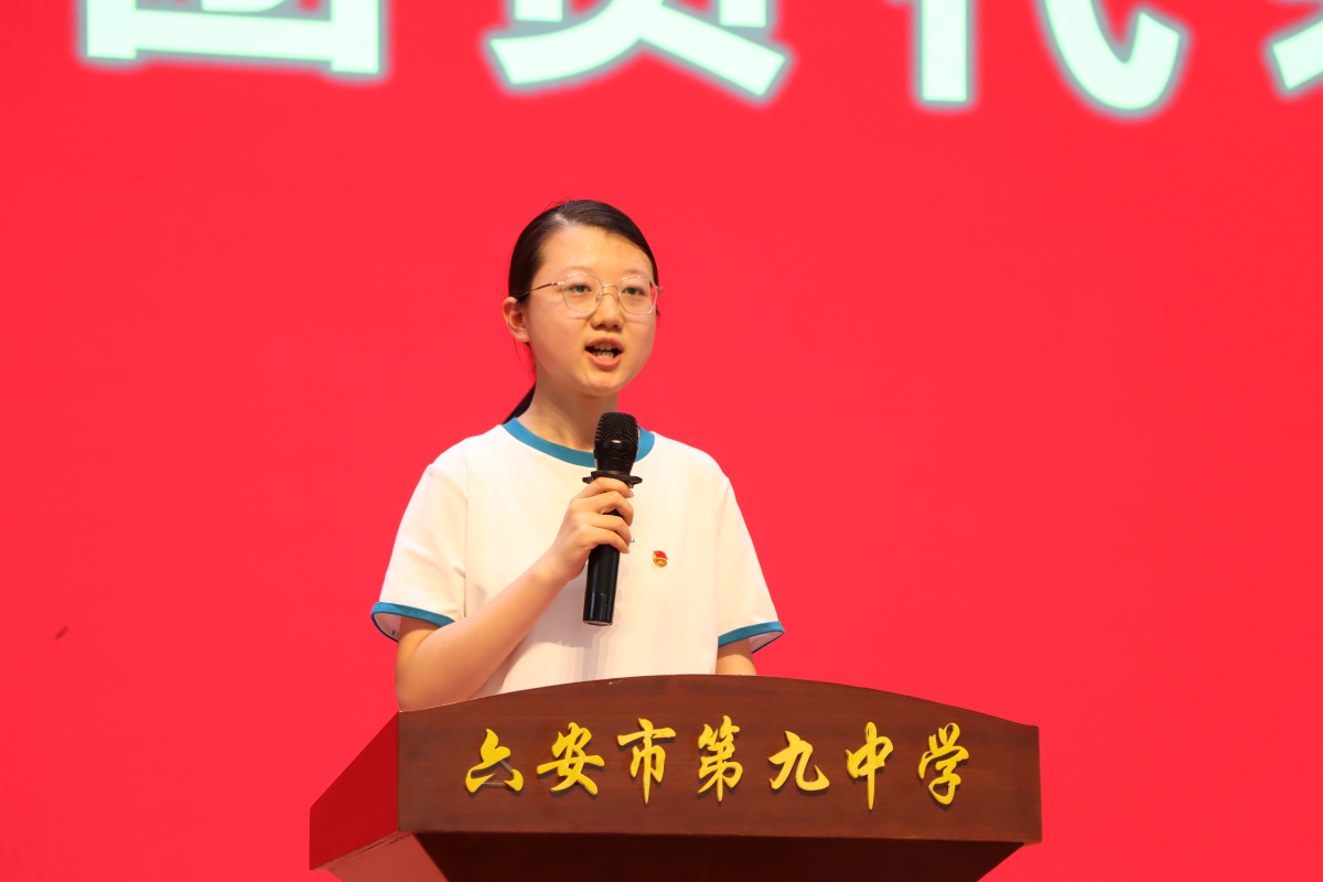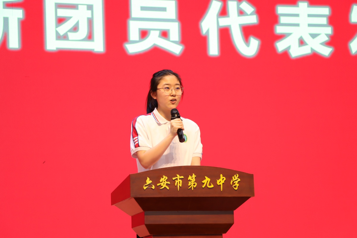 老团员代表、九(32)班范家凌同学对新团员们表示衷心地祝贺,并号召全体团员时刻牢记团员身份,以团员标准严格要求自己,充分发挥模范带头作用,努力做有理想、敢担当、能吃苦、肯奋斗的时代青年,让团徽熠熠闪光。