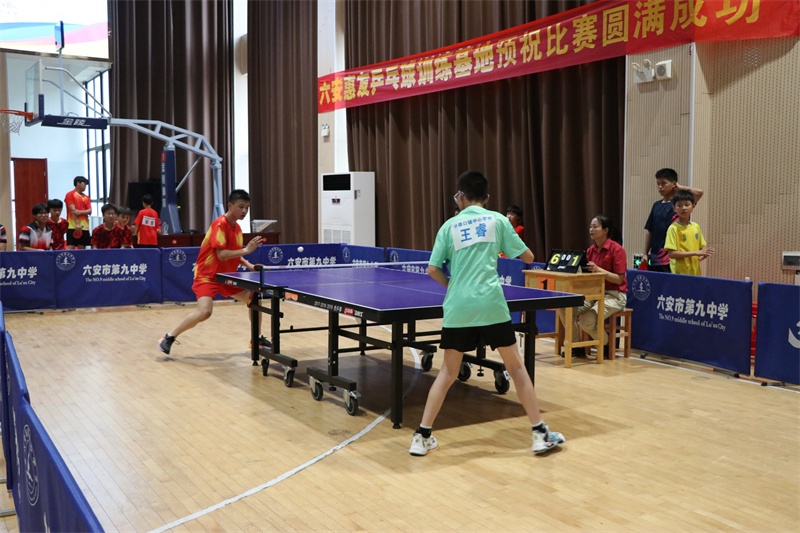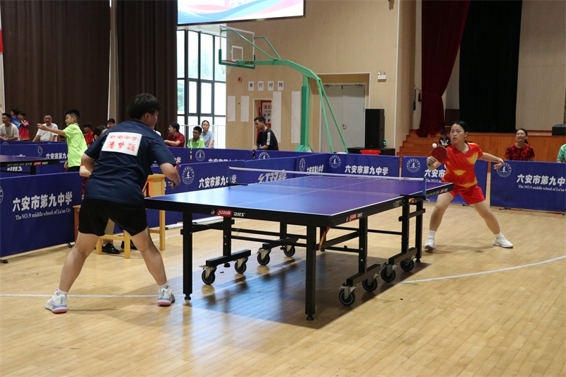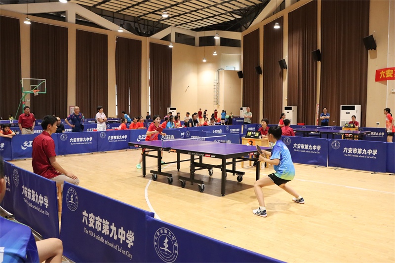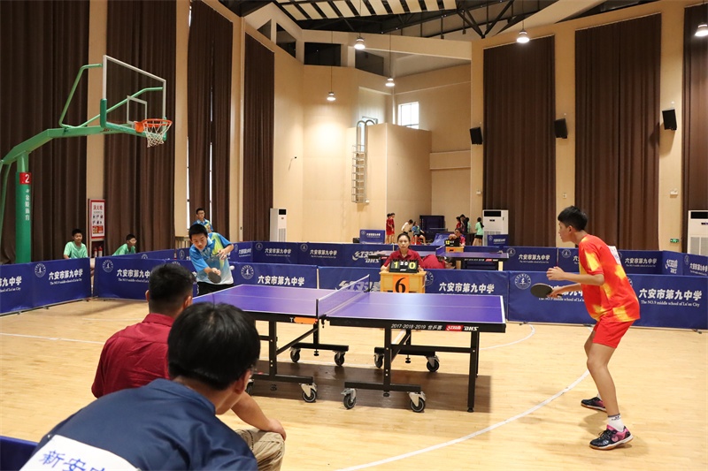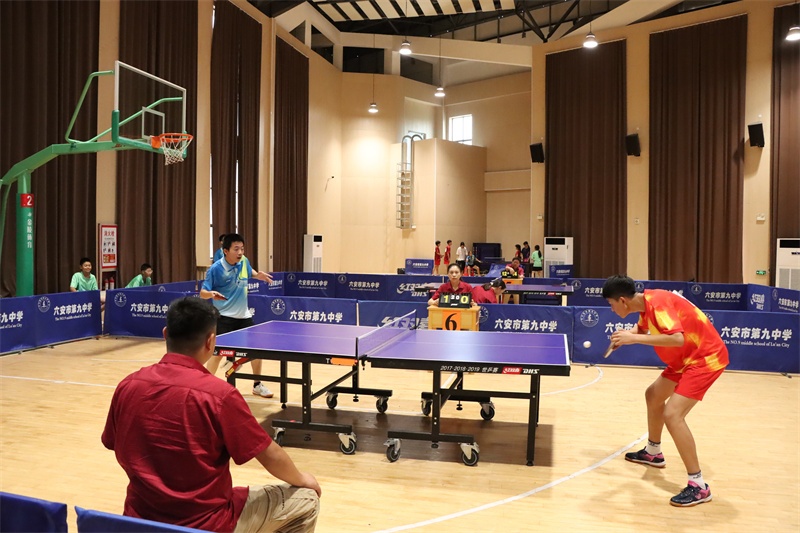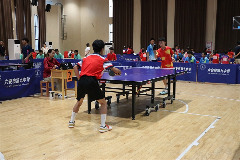 赛场上风云变幻,我校运动员们沉着应战,越战越勇。偌大的艺体馆内,一张张天蓝色的乒乓球桌分立木地板上,四周围满了观赛的师生们,拥挤的人群中不时传来一片惊呼声、喝彩声,我校队员表现抢眼。银球高抛,对方团队师生的心也被抛在半空,忌惮着此球的旋转、长短和落点;银球飞舞,我方队员眼疾脚快,卡位,蹬转,挥臂,一气呵成,气势如虹。对手一个侧旋长球,突袭我方底线,我方小队员并步转腰,迎头痛击;对手改发下旋短球,我方队员上步轻搓,再接拉球起板,直冲对手大角度。以我为主,见招拆招,拼的是实力和自信,打的是妄动和破绽。一时间,双方你来我往,隔桌缠斗,打出了一场场强强对抗的精彩比赛。我校运动员勇战群雄,战绩辉煌。在团体比赛中,我校男女代表队双双夺得冠军,捍卫九中集体的荣誉。男子单打比赛中,七(10)班徐子骞获得第二名,七(12)班宋修成和七(4)班蔡英博获得第五名;女子单打比赛中,七(28)班朱肖柔获得第三名,八(23)班曾书瑶获得第四名,七(2)班余芊茹获得第五名。学校荣获优秀组织奖。