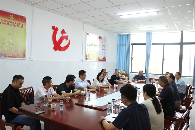 江飞代表丁集镇党委政府,热烈欢迎六安九中领导和教师一行,感谢六安九中为振兴乡村教育做出的巨大贡献,赞扬六安九中教师在丁集学校辛勤的付出和取得的成果,希望两校领导和教师,贯彻党的二十届三中全会精神,发挥教育在中国式现代化建设中战略性、基础性支撑作用,牢固树立长远观、大局观和情怀观,继续加强共建合作交流,共同做好城乡学校共同体建设这件很有必要、很有意义的事业,期待未来三年能在丁集镇这块沃土上再造一所“新九中”。