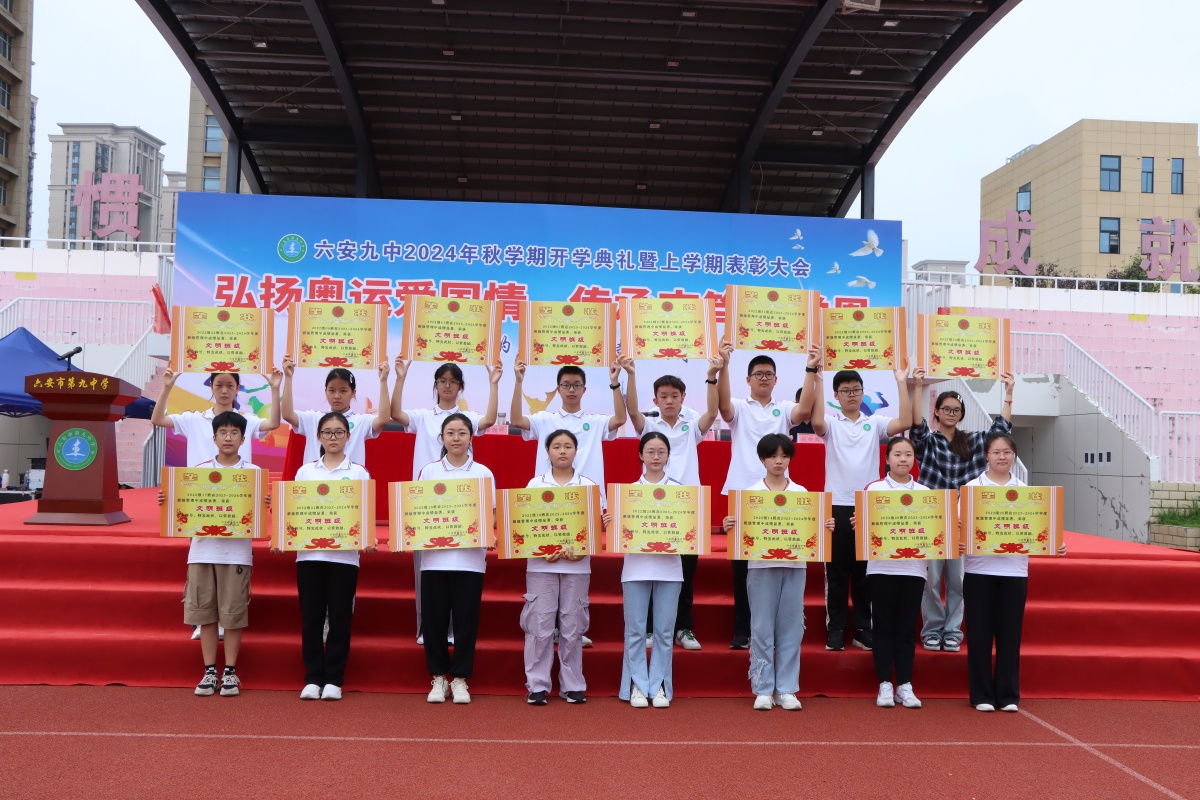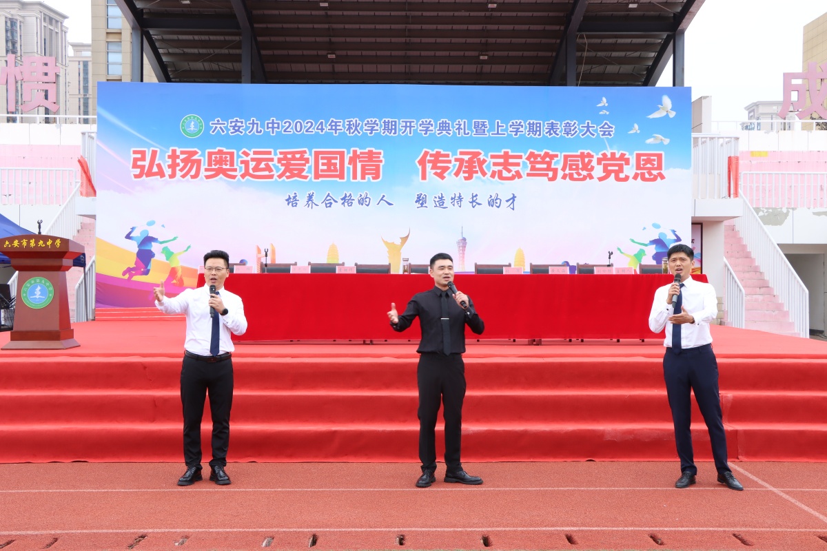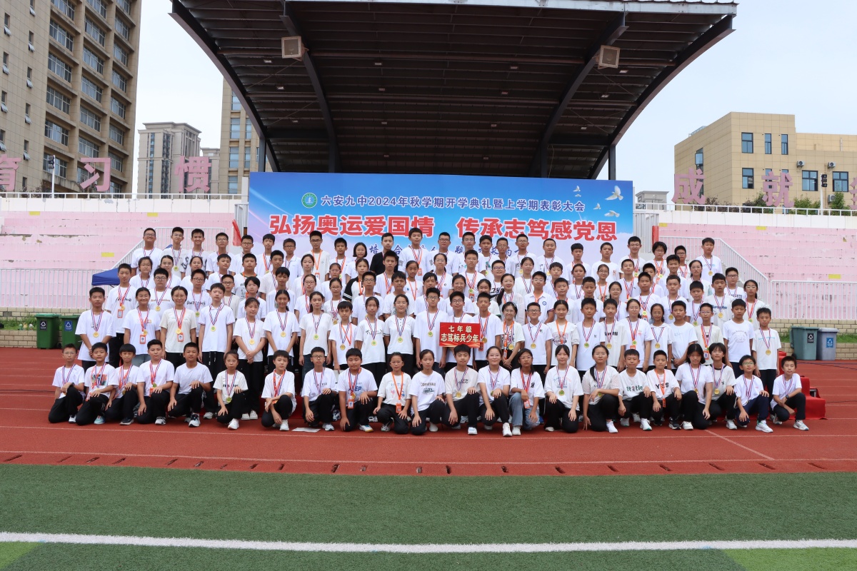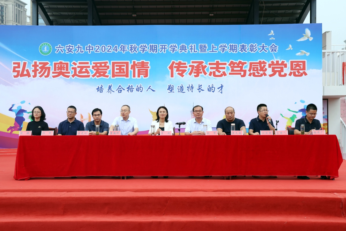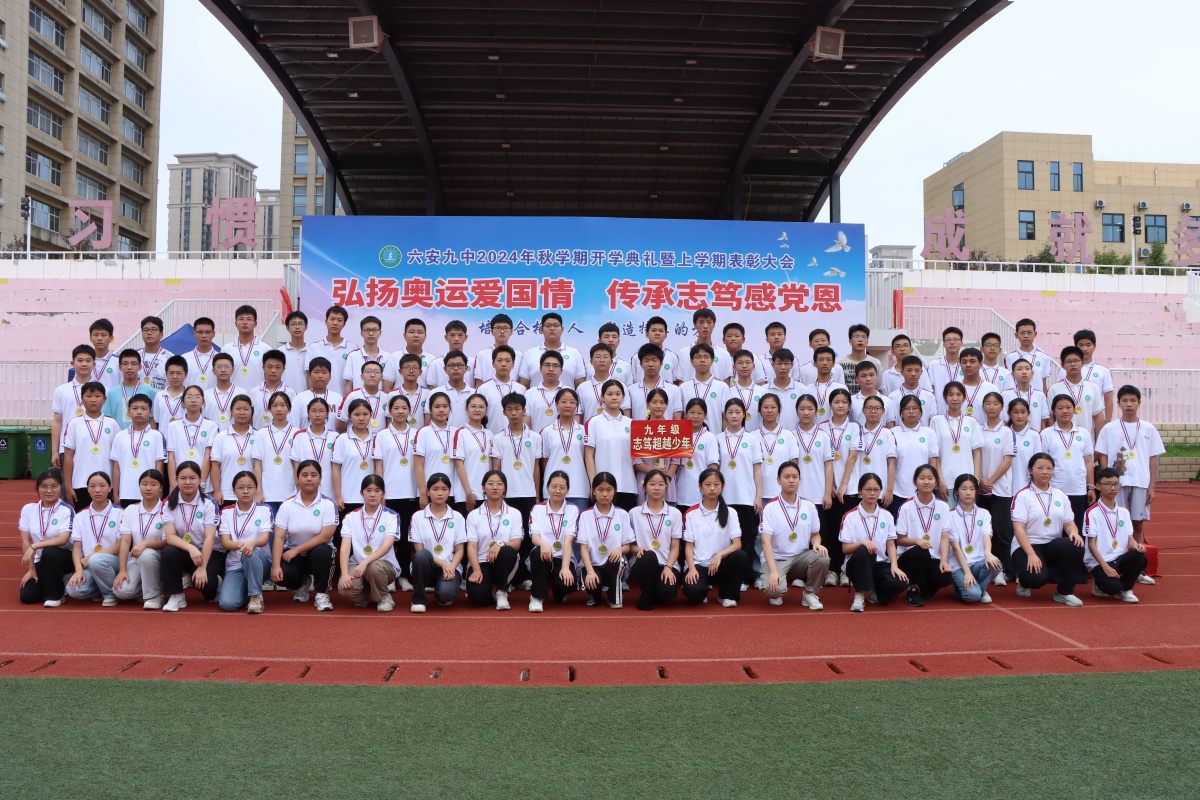 弘扬奥运爱国情,传承志笃感党恩。新的学期犹如一艘艘满载希望的航船,扬帆起航。新的希望恰似一颗颗破土而出的种子,茁壮成长。六安九中全体师生将积极传播和弘扬奥运精神,像奥运健儿一样,不畏艰难,勇于挑战,坚持不懈,团结协作,站上人生最高的领奖台;将志笃文化融入日常,用笃志、笃学、笃行、笃礼的精神武装自己,志存高远,博学求知,行而不辍,崇礼尚德,让青春在追求中闪光;将党的恩情化作前行的动力,坚定理想信念,勤奋刻苦学习,勇于创新创造,用实际行动去书写强国建设、民族复兴伟业的壮丽篇章。(文:查军柱 图:李应 视频:马业刚)