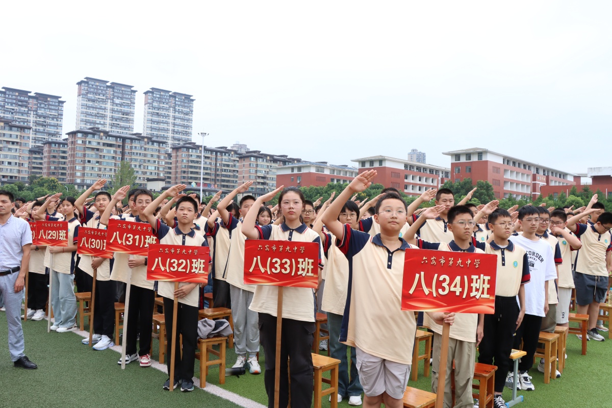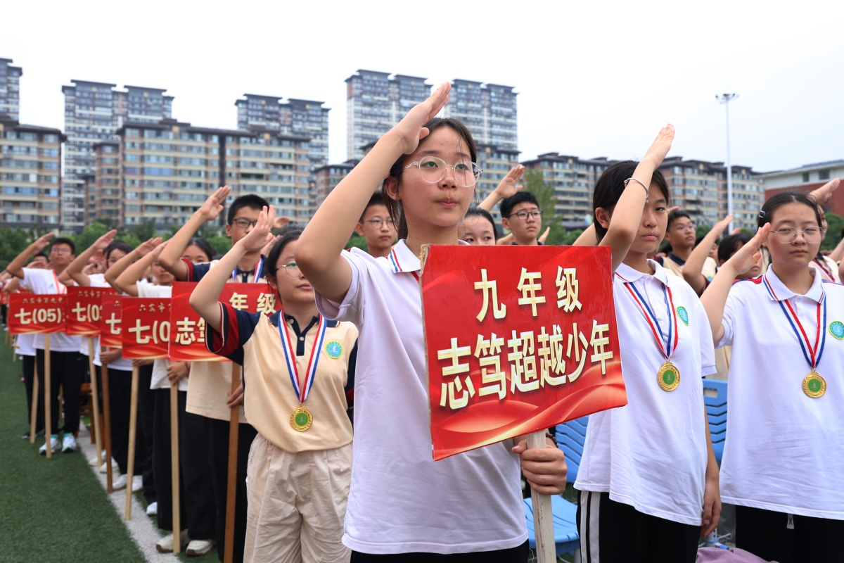 续写荣光志气扬。九(6)班的张皖湘同学代表毕业班学生道出续写九中中考新华章的无悔心声。初三,就要选择坚持,奋力奔跑;初三,就要坚定理想,化苦为乐;初三,就要只争朝夕,精益求精。