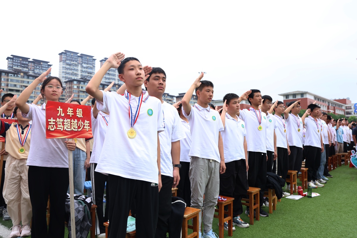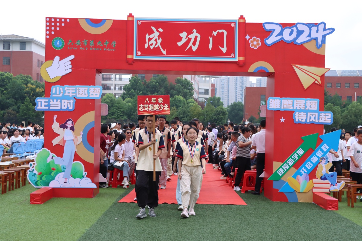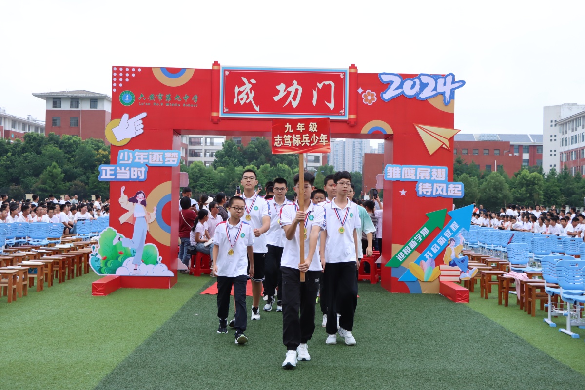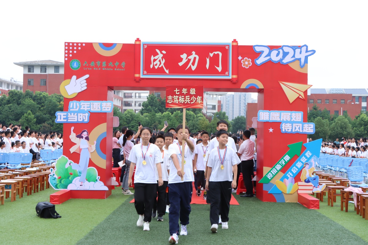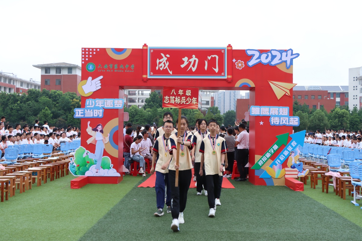 标兵载誉受表彰。获得“志笃标兵少年”和“志笃超越少年”荣誉称号的500余名同学,组成了5支队伍,走上了学校倾情铺垫的“红地毯”,穿越象征胜利的“成功门”,接受学校最高规格的褒奖。他们身形挺拔、步伐稳健、气冲云天,坚定的目光中充满对永攀高峰的渴望,青春笑脸里洋溢着因努力而收获胜利喜悦。