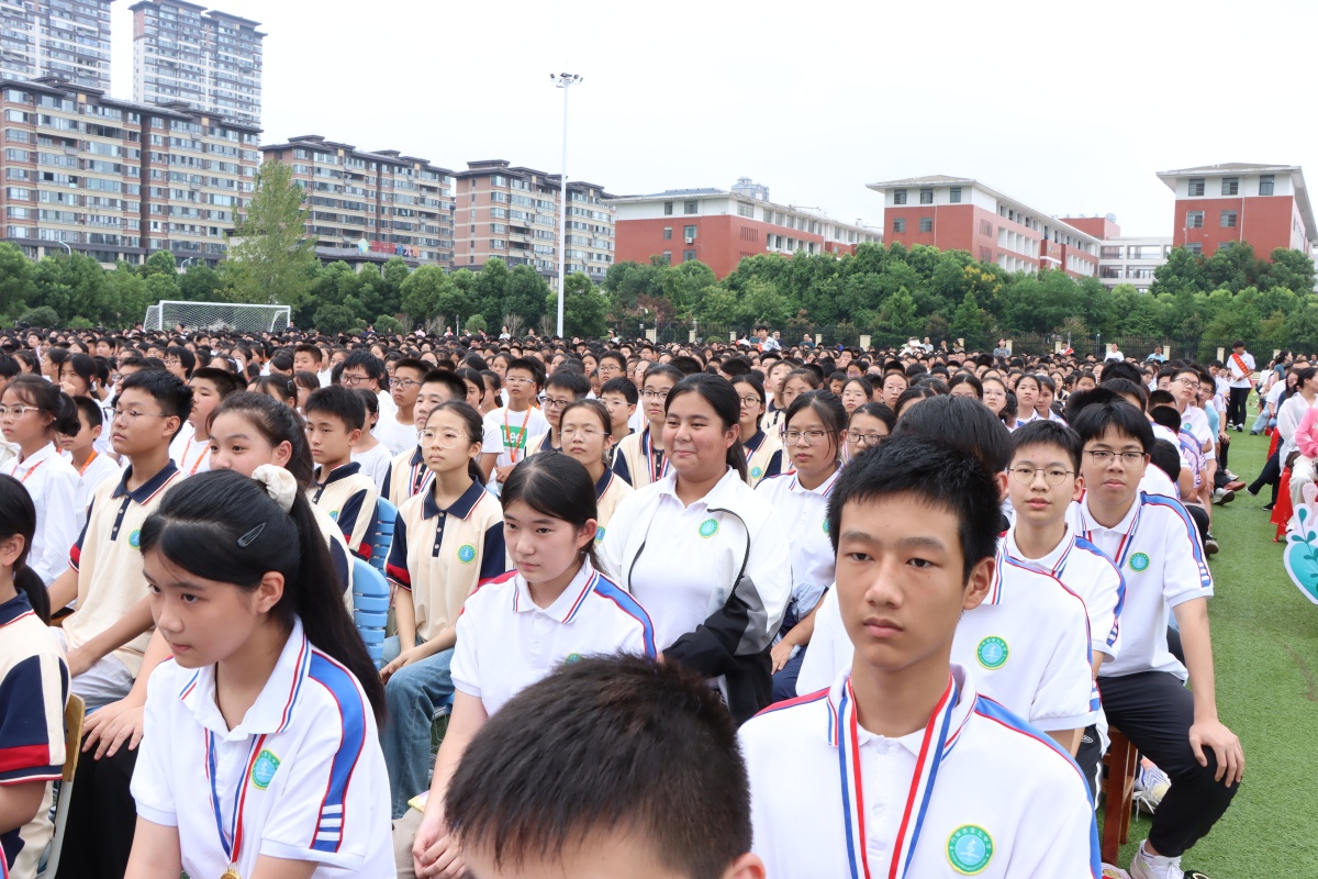 开场暖曲强自信。开学典礼在《热辣滚烫》和《阔步新时代》的开场歌曲中拉开序幕。音乐组老师倾情演出,传达出积极向上的人生态度,传递出追求梦想的满腔热情。