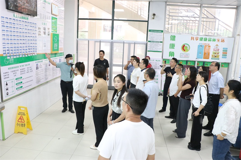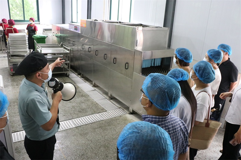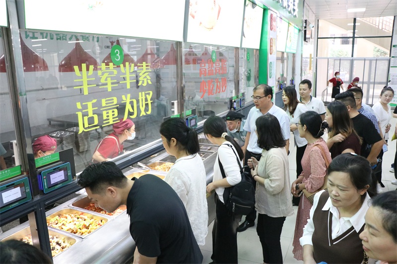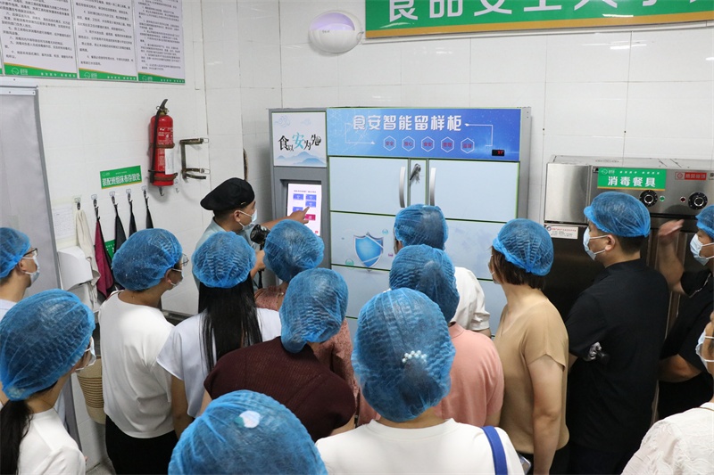 座谈会结束后,家委会成员参观了校园环境和学校文化,查看了学校食堂加工区、烹饪区、食品储存区、配餐区、洗消区等区域,对食堂的明厨亮灶、设施设备、食品加工、食品储存、进货查验、操作流程和营养搭配等进行深入了解。