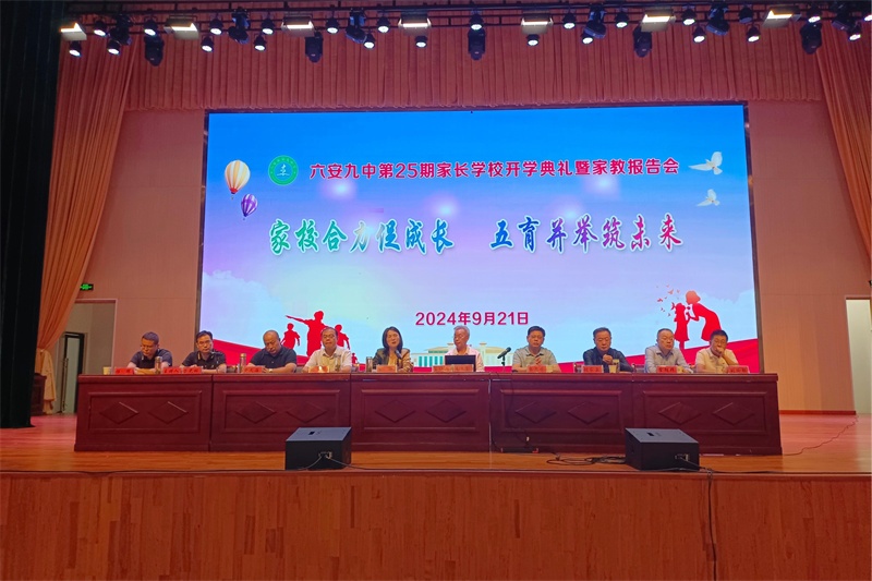 为进一步加强学校与家庭之间的紧密联系,积极营造家校共育的良好氛围,大力推进家庭教育指导服务工作,促进学校教育与家庭教育的协调发展,9月21日上午,六安九中隆重举行以“家校合力促成长 五育并举筑未来”为主题的第25期家长学校开学典礼暨家教报告会。