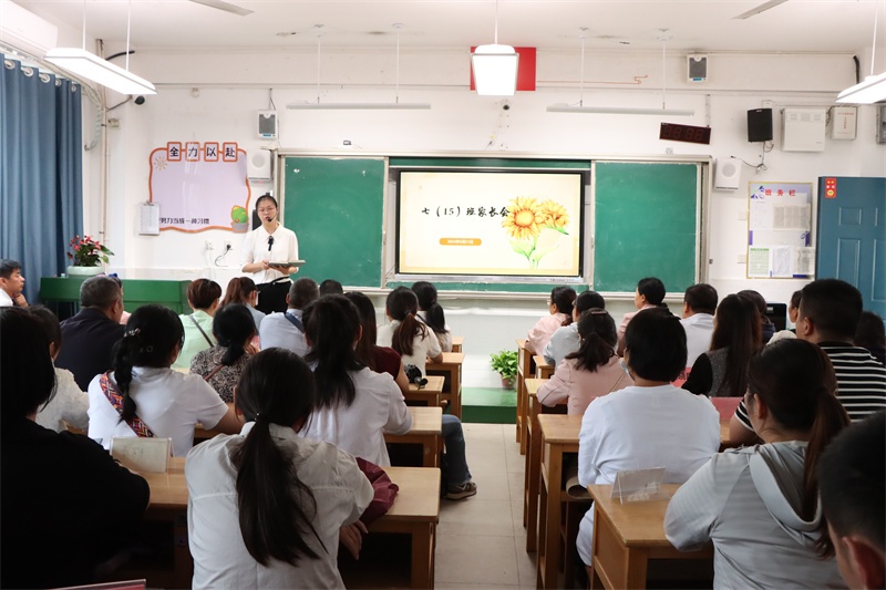 七(15)班班主任何叶代表教师在开学典礼上做了题为《携手共育 共创未来》的发言,表达七年级全体班主任及教师的心声。何叶建议各位家长积极参与学校教育活动,了解孩子在学校的学习生活情况,与老师保持密切沟通。她表示,全体班主任和教师将继续秉承“培养合格的人 塑造特长的才”的育人理念,不断创新教育方法,提升教育教学质量,加强家校合作与交流,持续关注孩子身心健康,为孩子的全面发展和健康成长保驾护航。