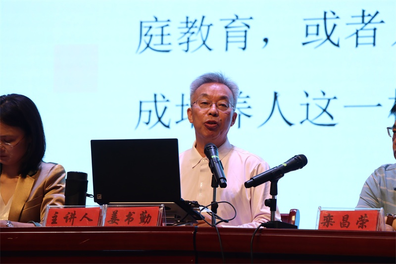 姜书勤做了题为《家校共育——为孩子提供成长的动力》的家教报告。姜书勤从“家庭与学校的共同责任”“让孩子学会时间管理”“激发孩子的学习内驱力”“学会和青春期的孩子沟通”四个方面阐释了“家校共育”的内涵及重要意义。讲座中,姜书勤以丰富的家庭教育案例,强调了家庭教育在孩子成长过程中的重要性,引导广大家长积极做到家庭教育要与学校教育保持一致,指导家长如何解决“怎样让孩子学会管理时间”“家庭教育如何管理手机”“怎样唤醒孩子学习内驱力”等问题。姜书勤的讲座旁征博引、深入浅出、干货满满,既有理论的高度,又有很强的指导性,各位家长听得认真,记得仔细,受益颇多。