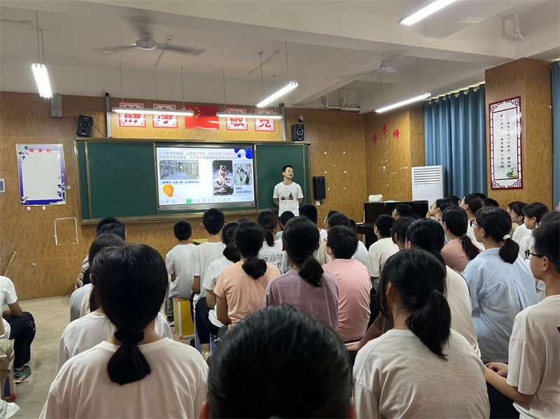 各班级组织以“提升全民科学素养,协力建设科技强国”为主题的班会课。班会上,老师们通过PPT展示科普知识,将学科内容和科技知识相结合,让学生在互动中深刻体会科技的重要性,激发了对科学的热爱和探索精神。