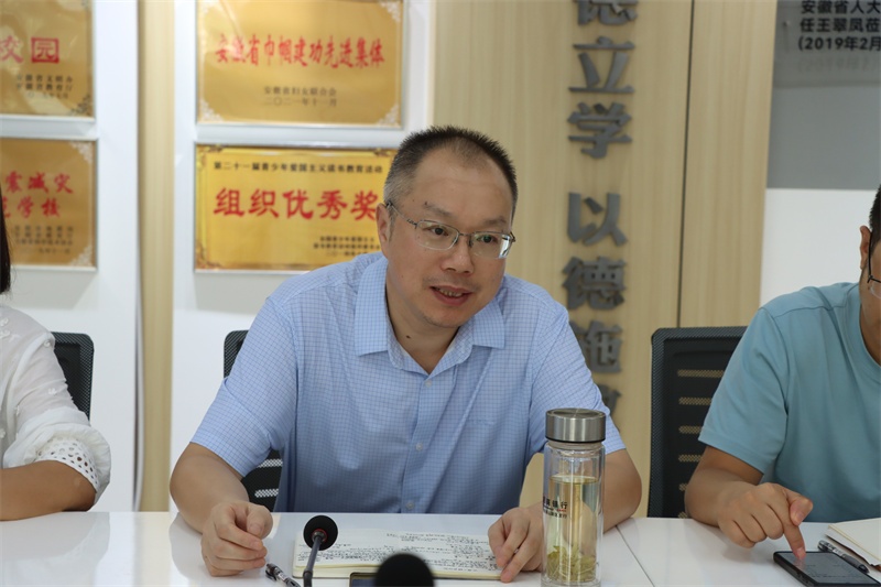 蓝方教师代表徐道义老师用“忐忑”“责任感”两个词回顾了师徒间的历程,认为教与学、青和蓝是相互的,自己也在此中收获良多,他以自己2600多节的听课经历告诉青年教师要多主动、多钻研、多思考积累、多走出去,要改变传统教育模式、改变旧的教学方式、改变育人理念、改变自身形成风格,并期待在未来能闻到一路教研花香。教导处梁中兵主任回顾了三年来青蓝结对工作的经验,量身定制为青年教师打造最适合发展的方法和途径,互学互鉴,示范引领,在传承中不断创新,在工作中携手共进、共同提升。